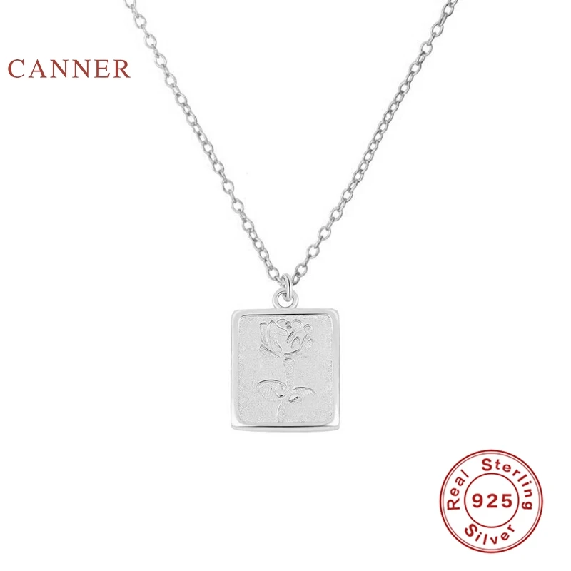 CANNER Настоящее серебро 925 пробы ожерелье модное квадратное Брендовое розовое ожерелье для женщин 2020 Ювелирная цепочка колье Bijoux ошейник