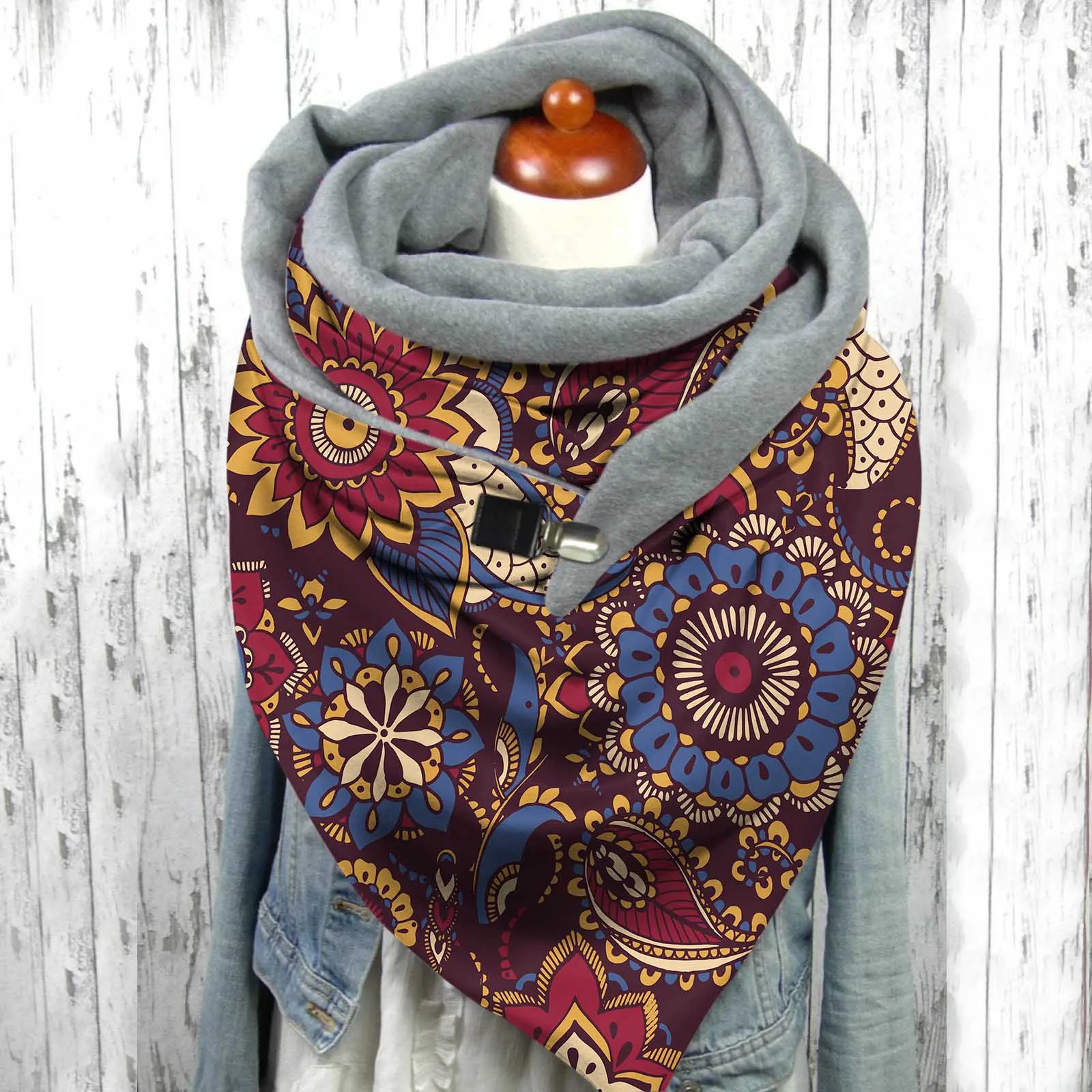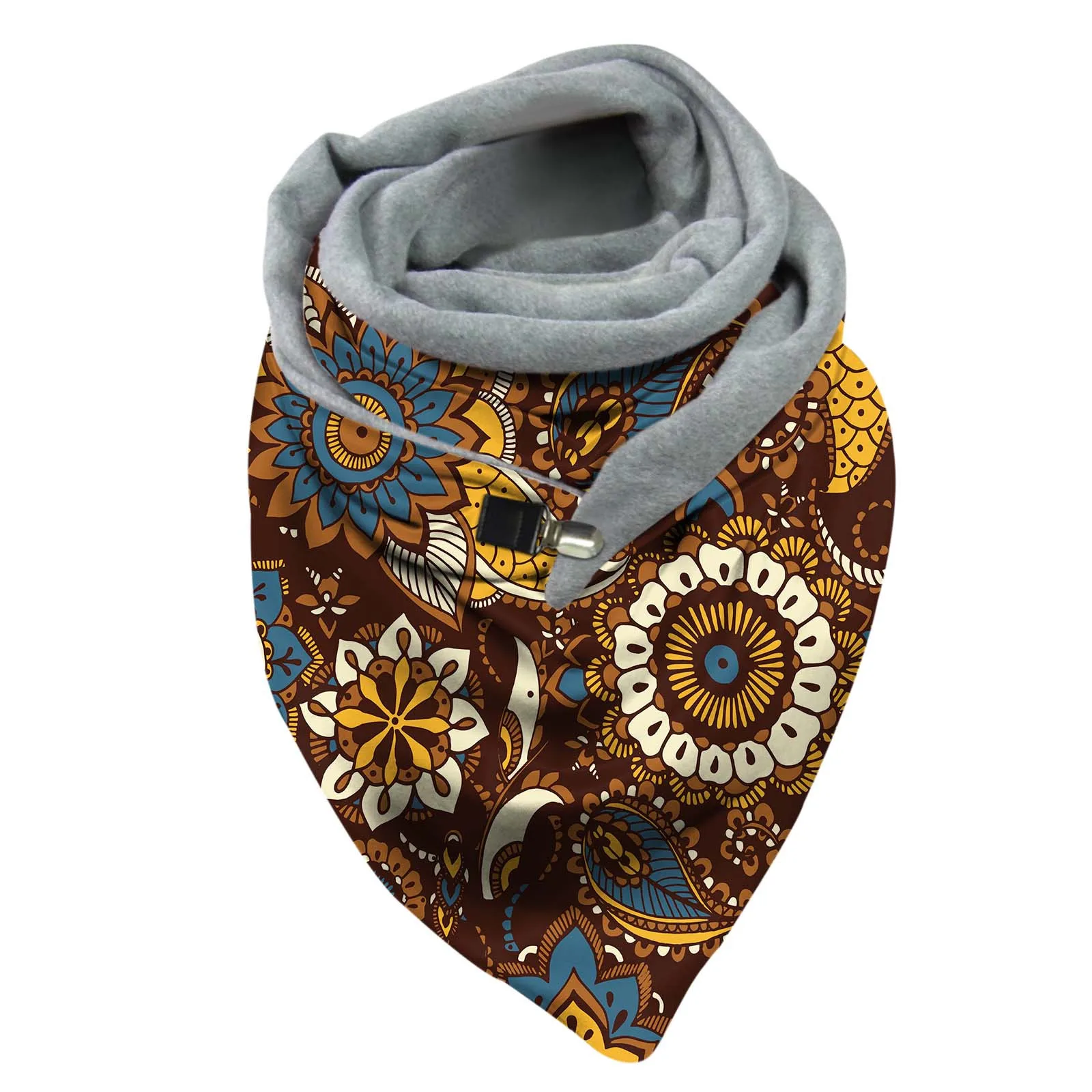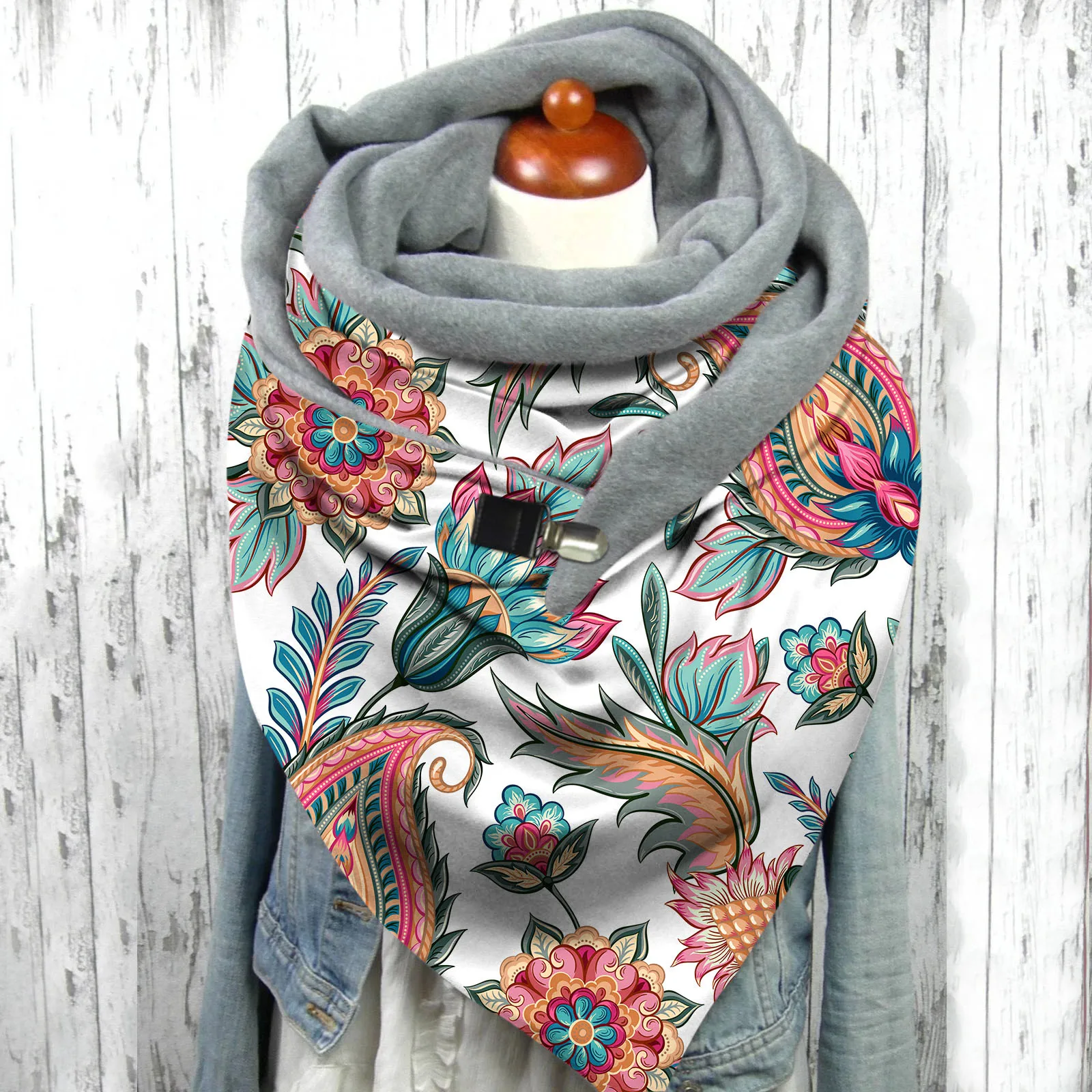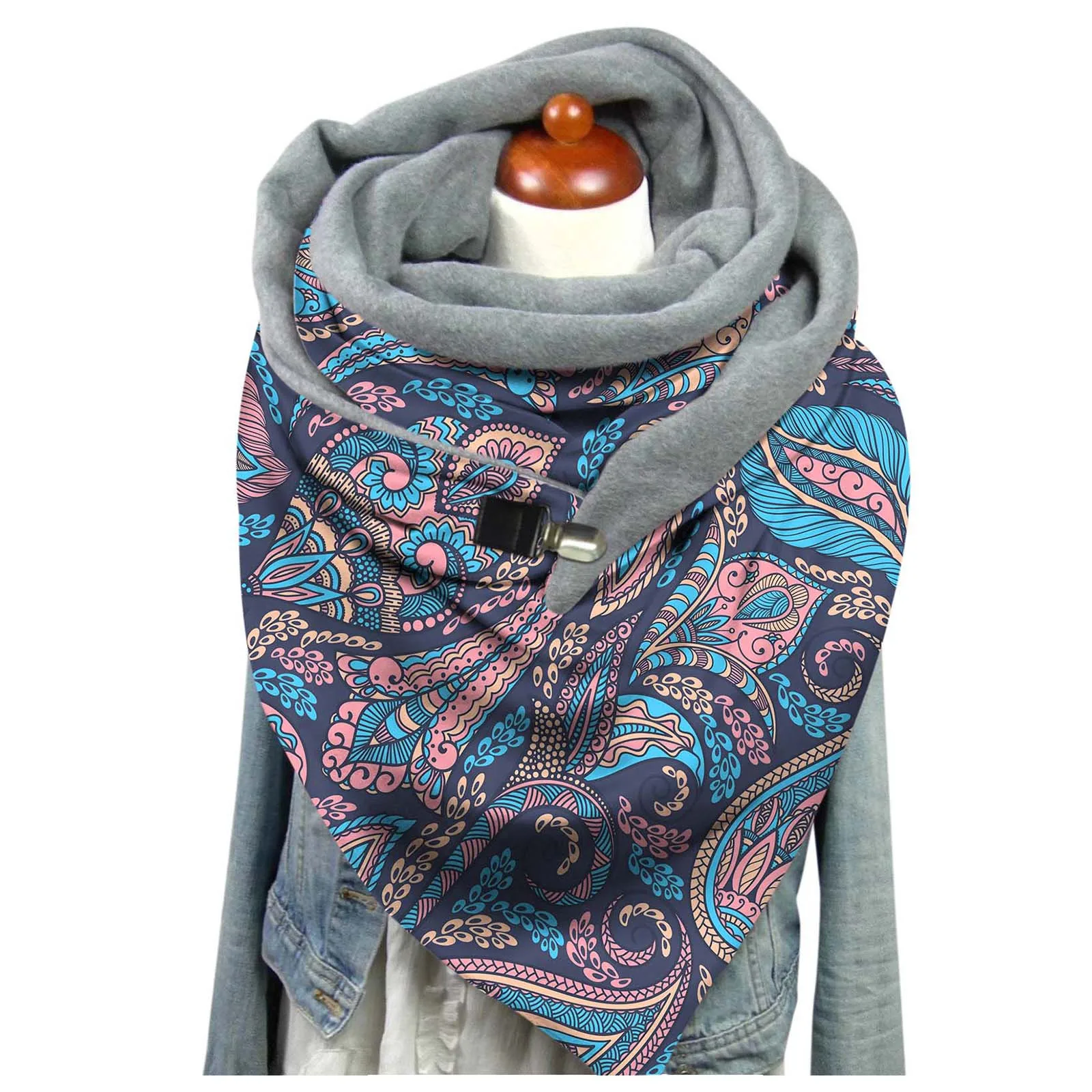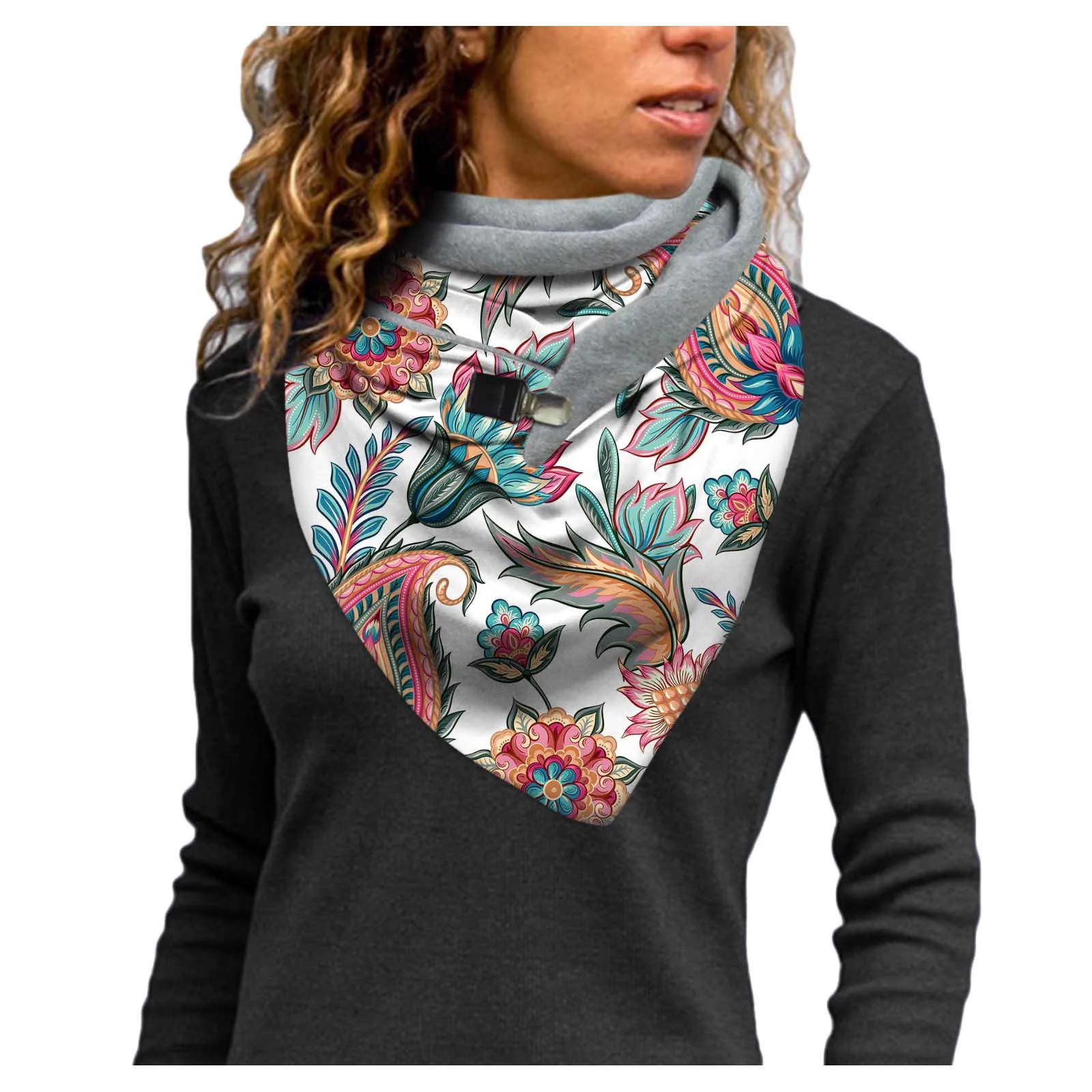 Женский шарф с клипсами 40 #, модный многофункциональный шарф-шаль в стиле ретро с цветочным принтом, теплые удобные шарфы на пуговицах
