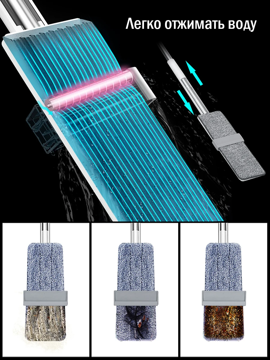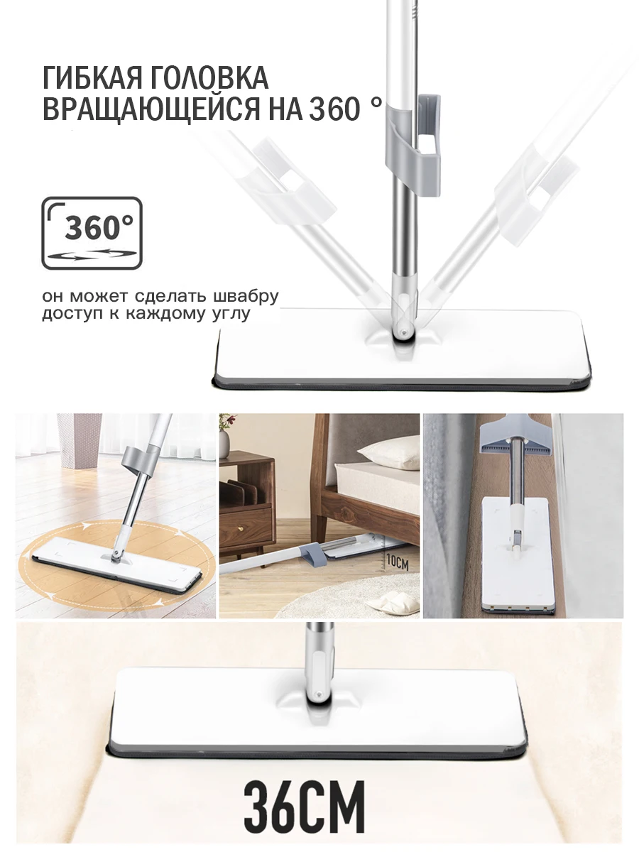 Легкая самоотжимающаяся швабра, плоская швабра с откидной крышкой, вращение на 360 градусов,Влажная и сухая уборка, многоразовая