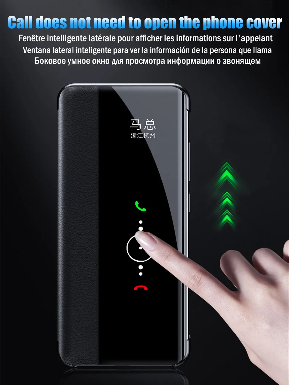 Умный откидной боковой окно из чехол для телефона натуральной кожи