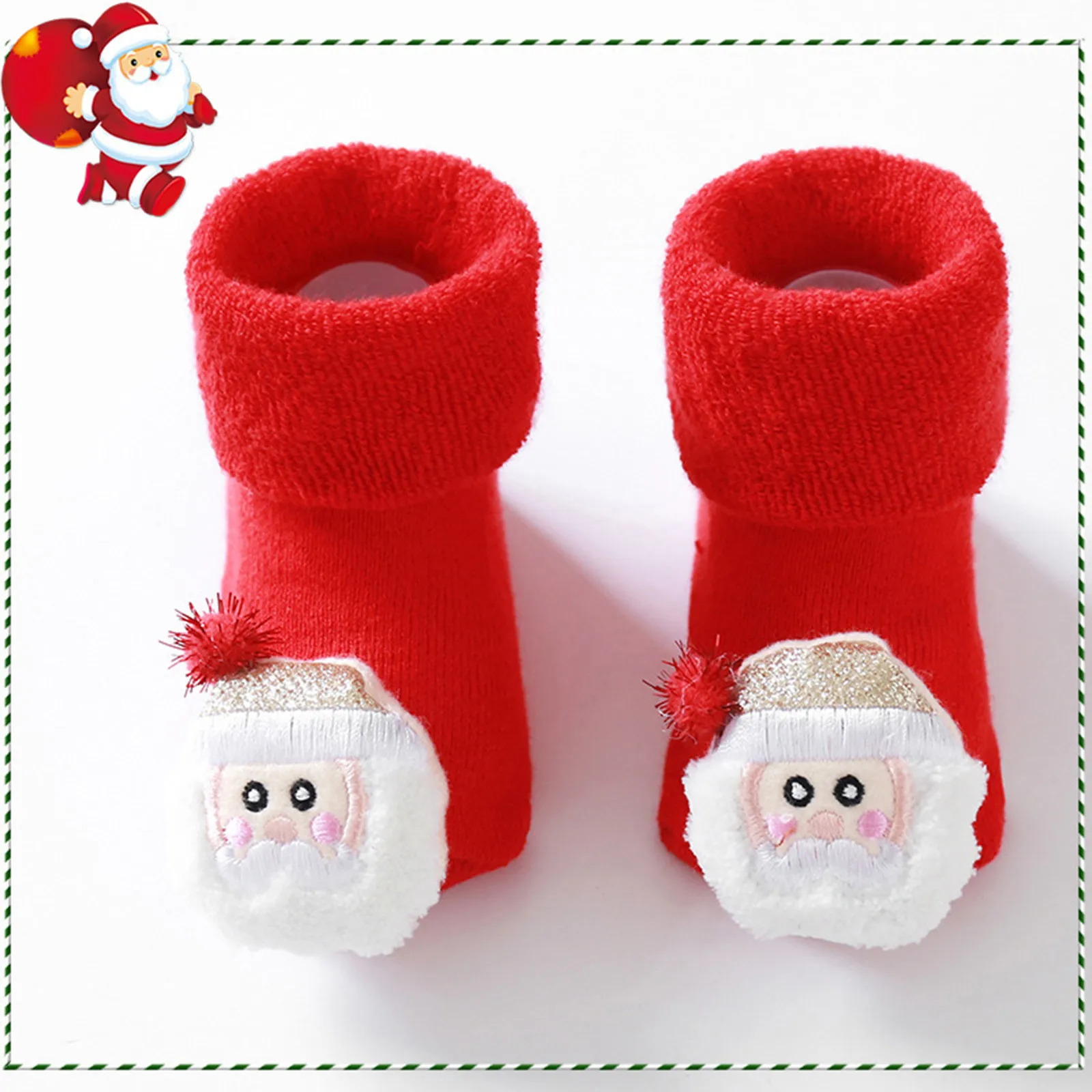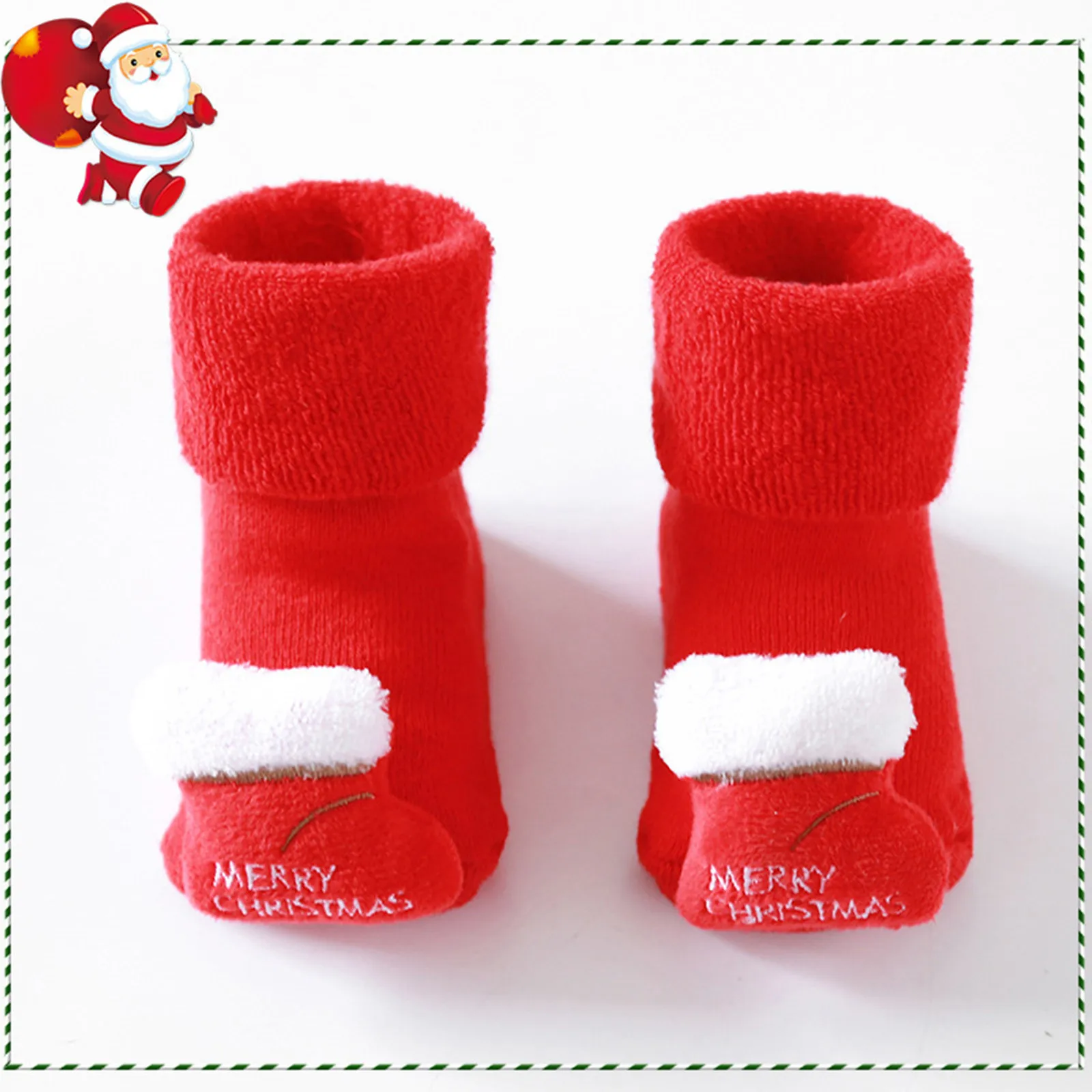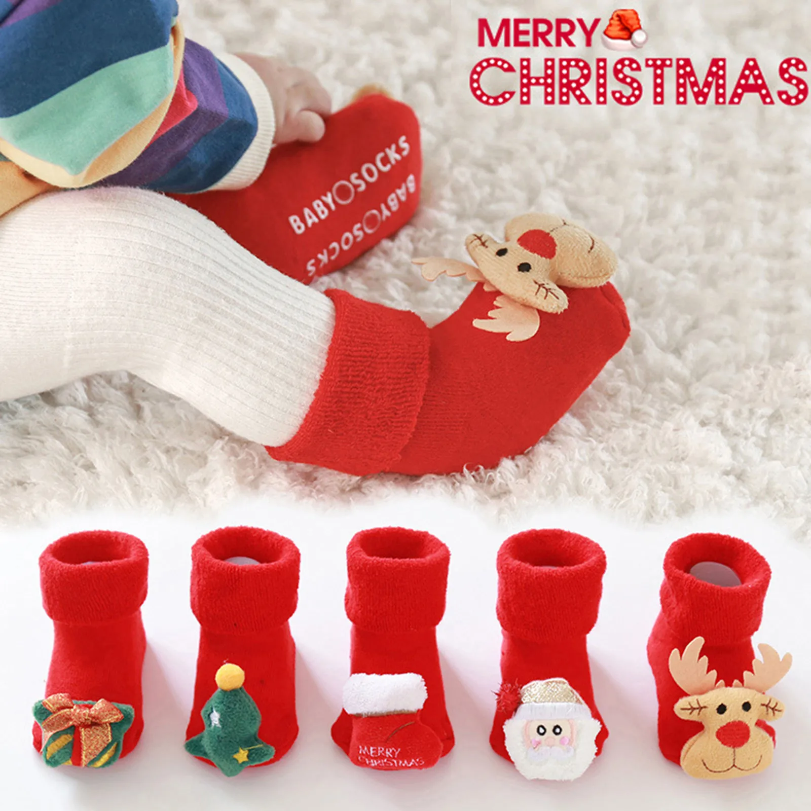 Рождественские теплые детские Носки с 3d-рисунком, нескользящие Носки-тапочки для новорожденных девочек и мальчиков с 3d-рисунком животных