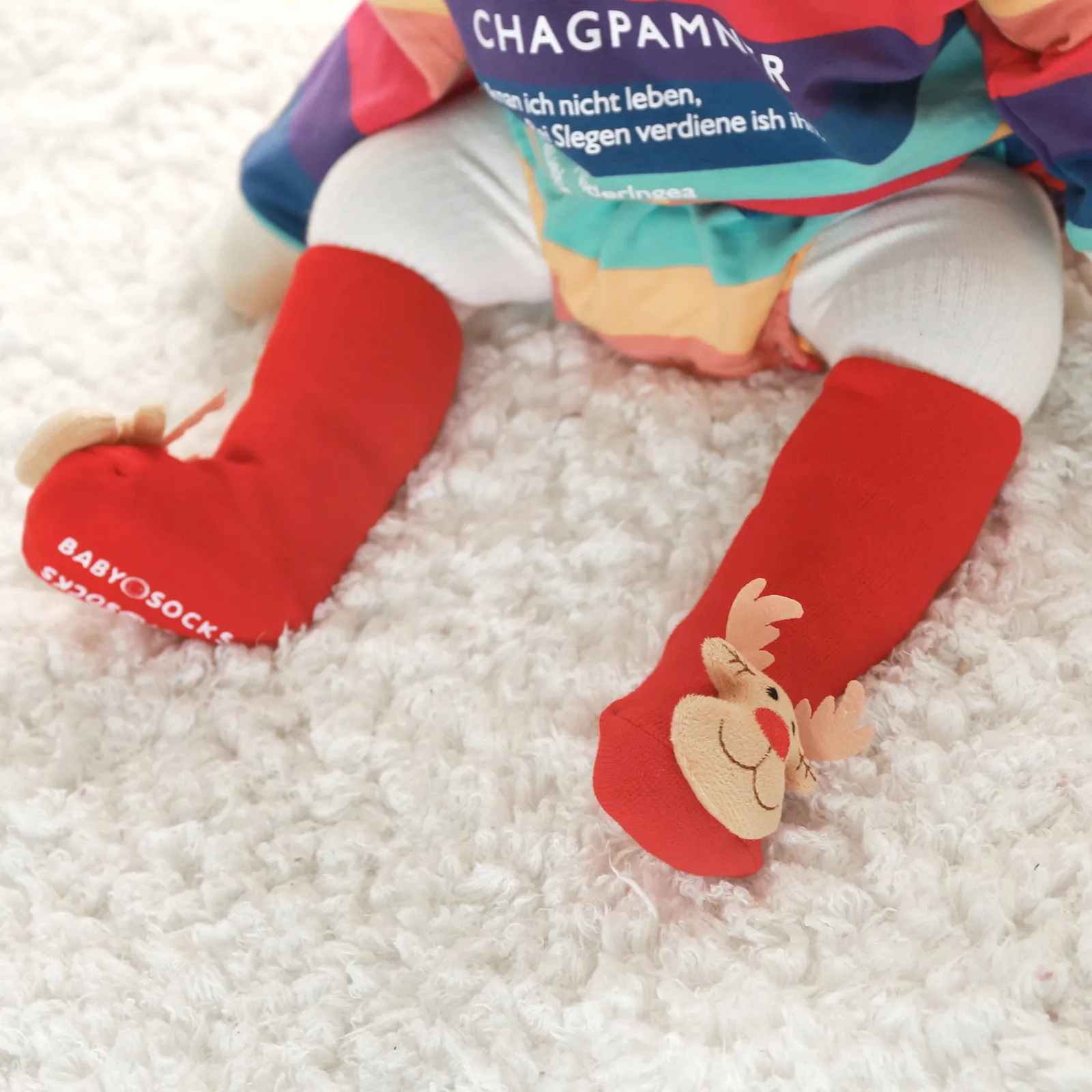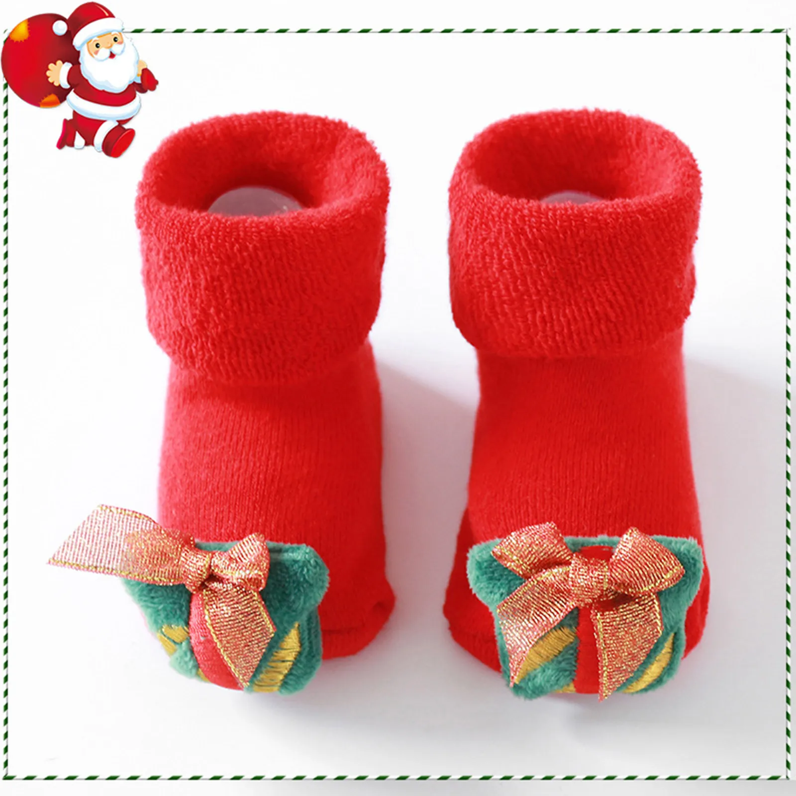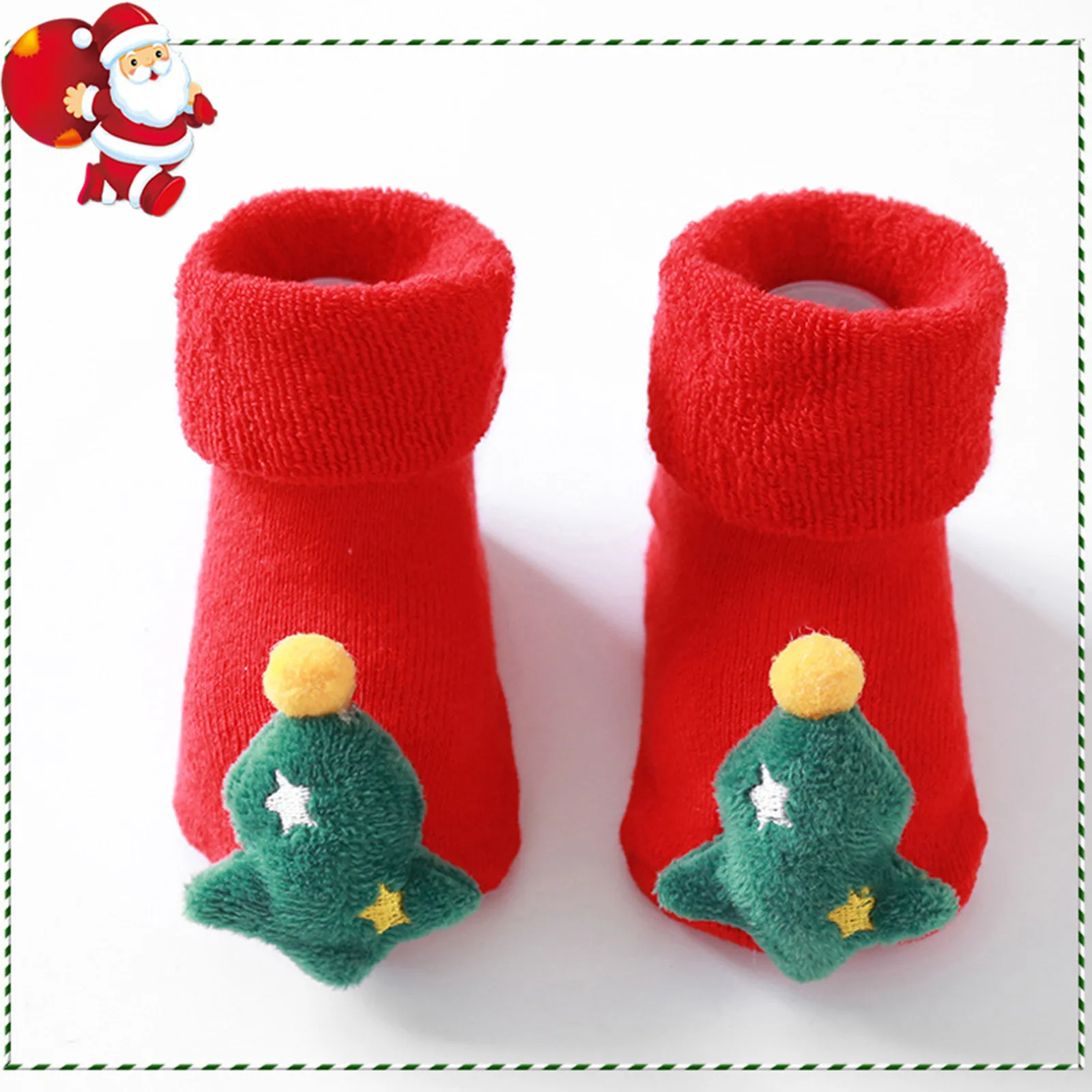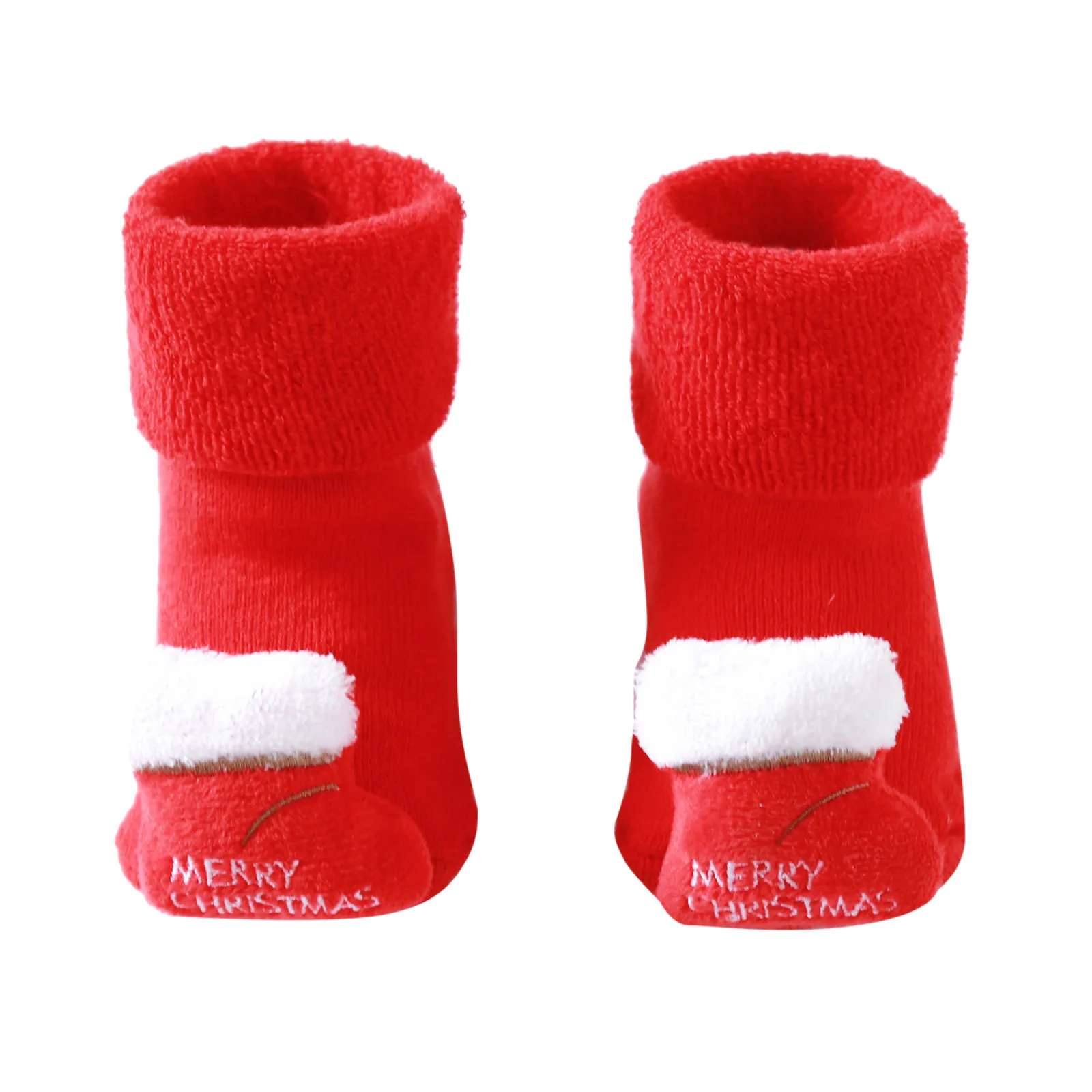 Рождественские теплые детские Носки с 3d-рисунком, нескользящие Носки-тапочки для новорожденных девочек и мальчиков с 3d-рисунком животных