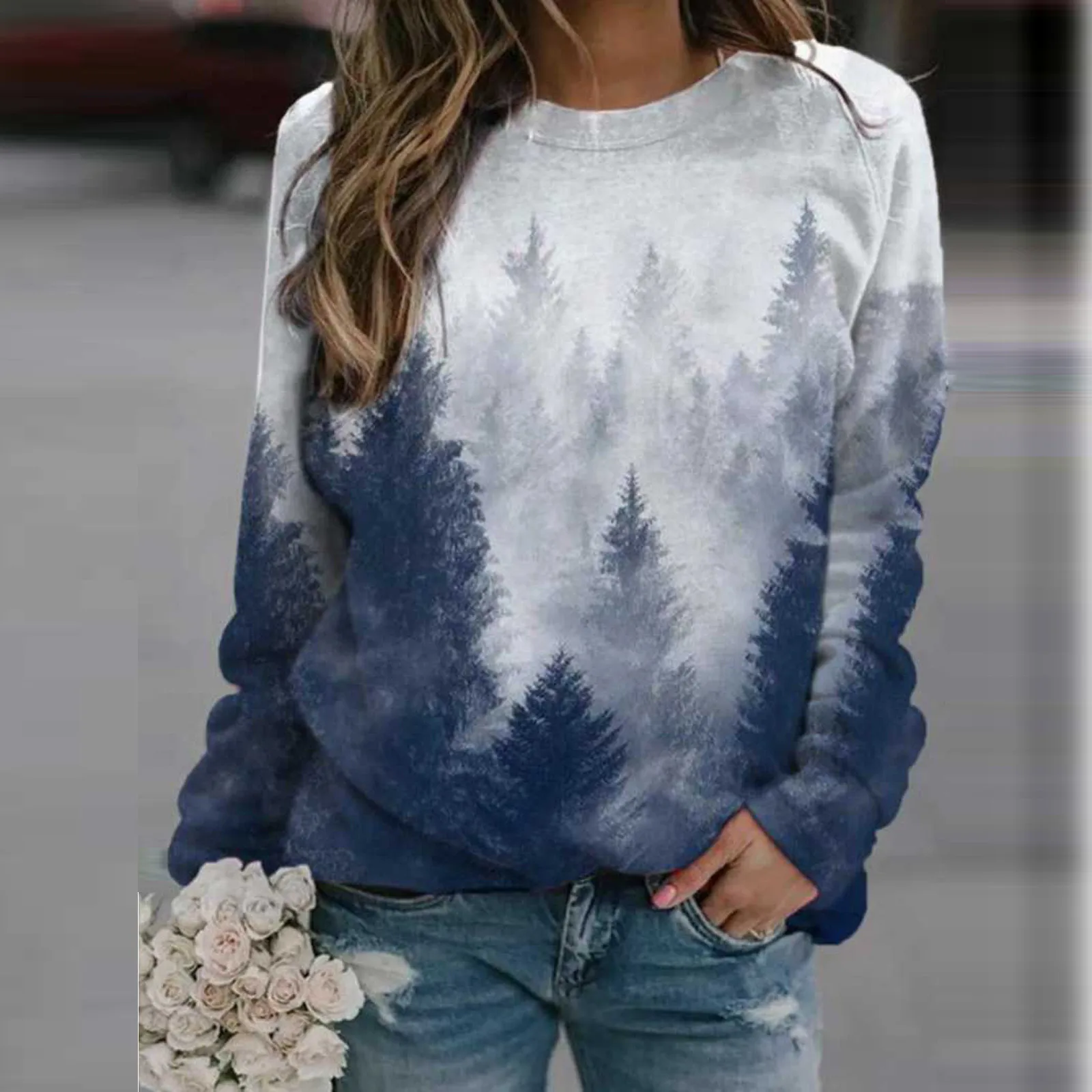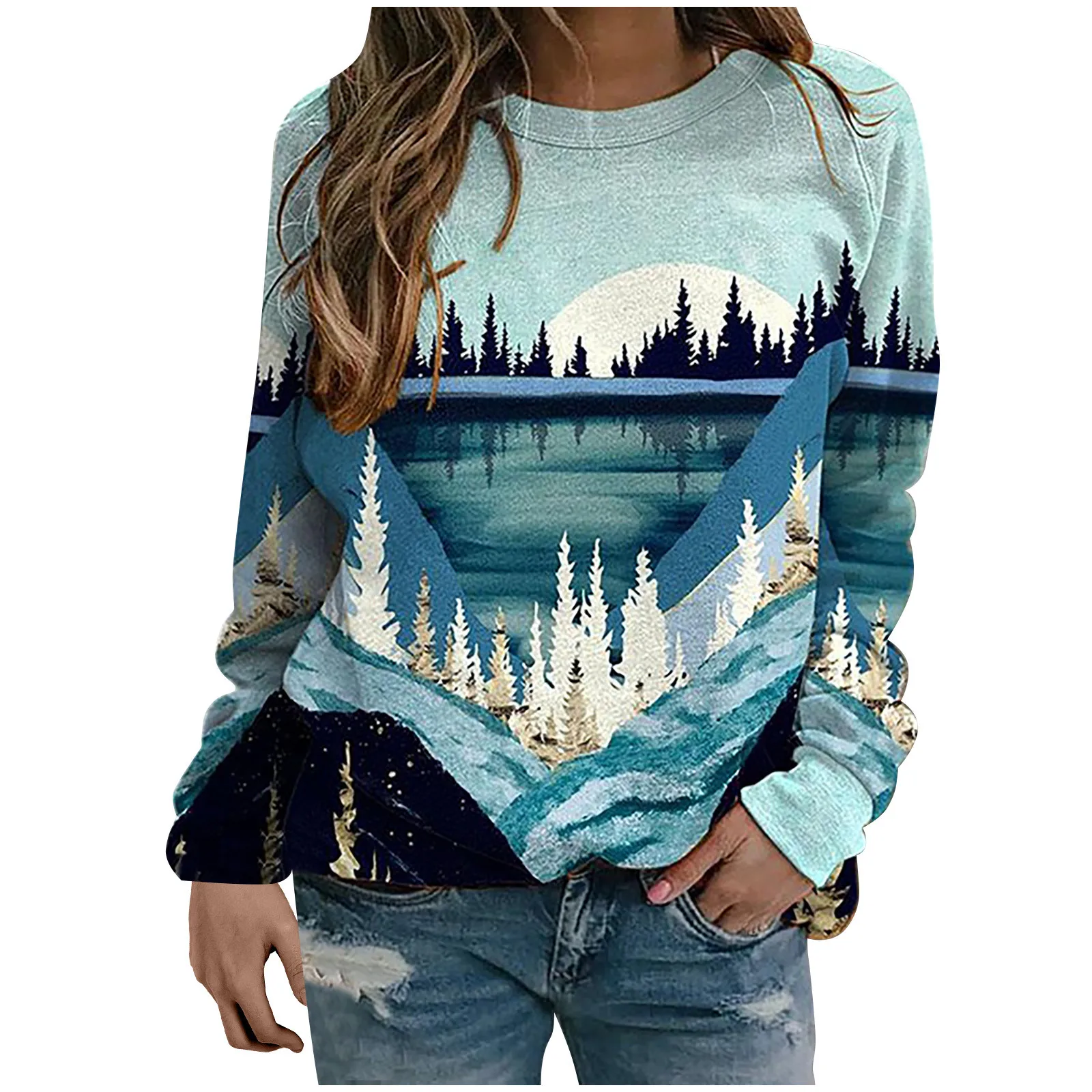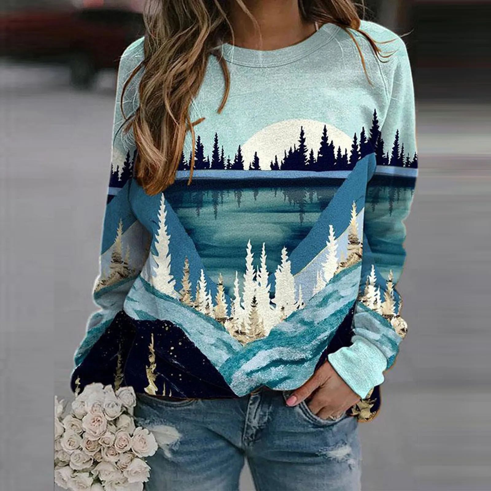 Женская толстовка с капюшоном, модная толстовка с принтом в виде лесной горы, повседневный пуловер с длинным рукавом, большие размеры, Осень-зима