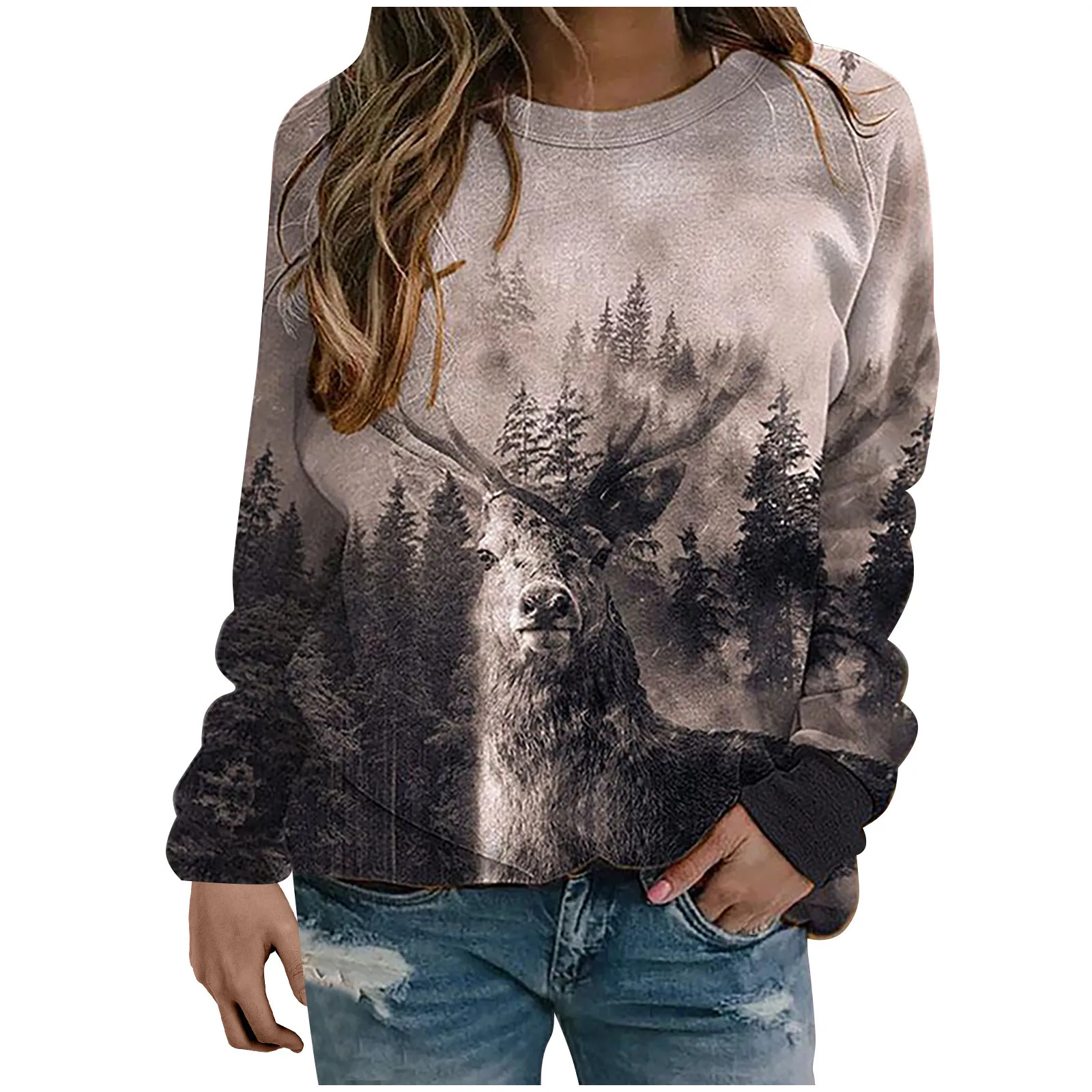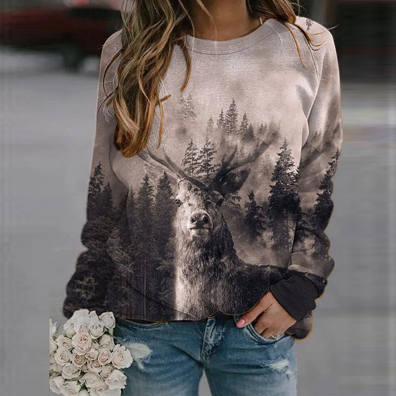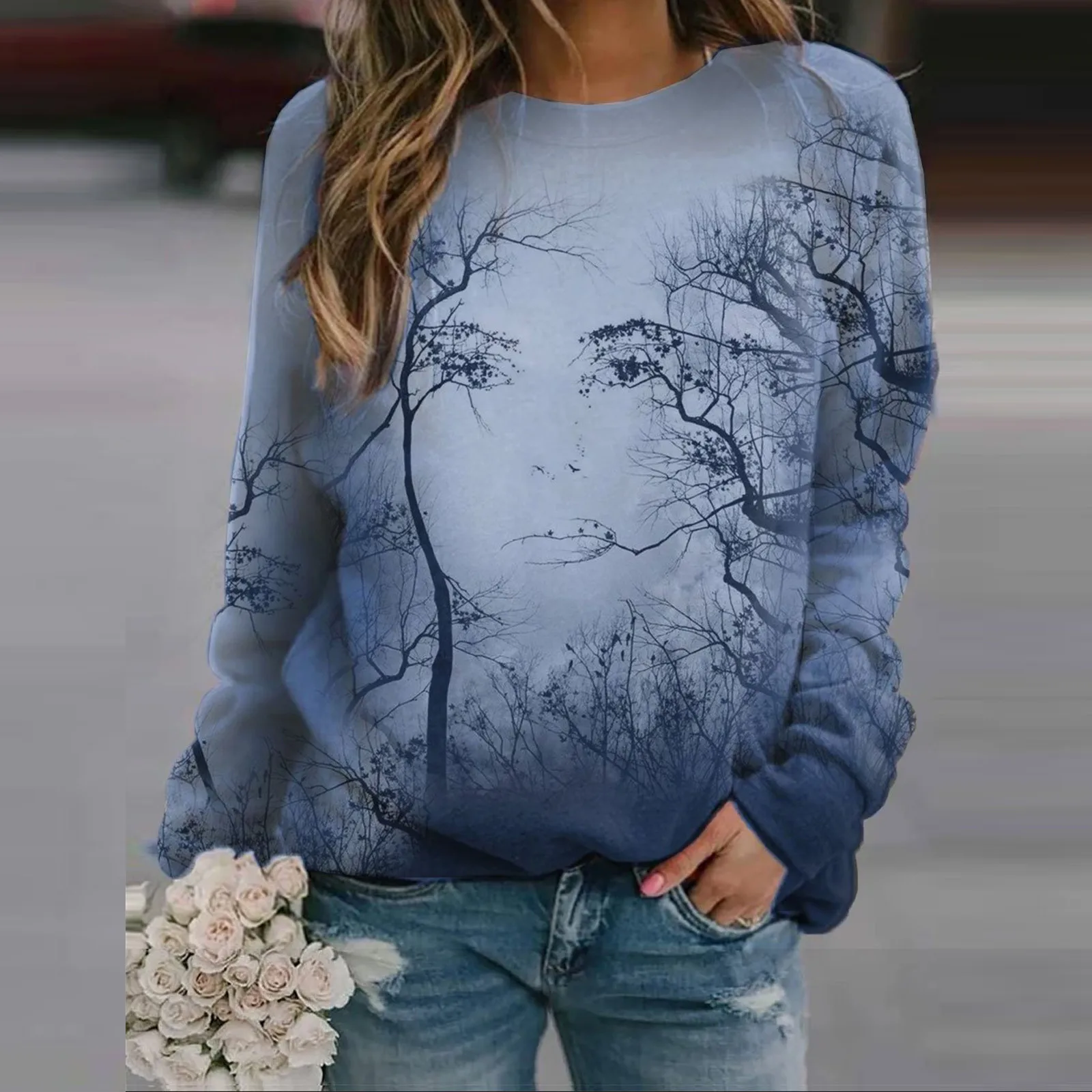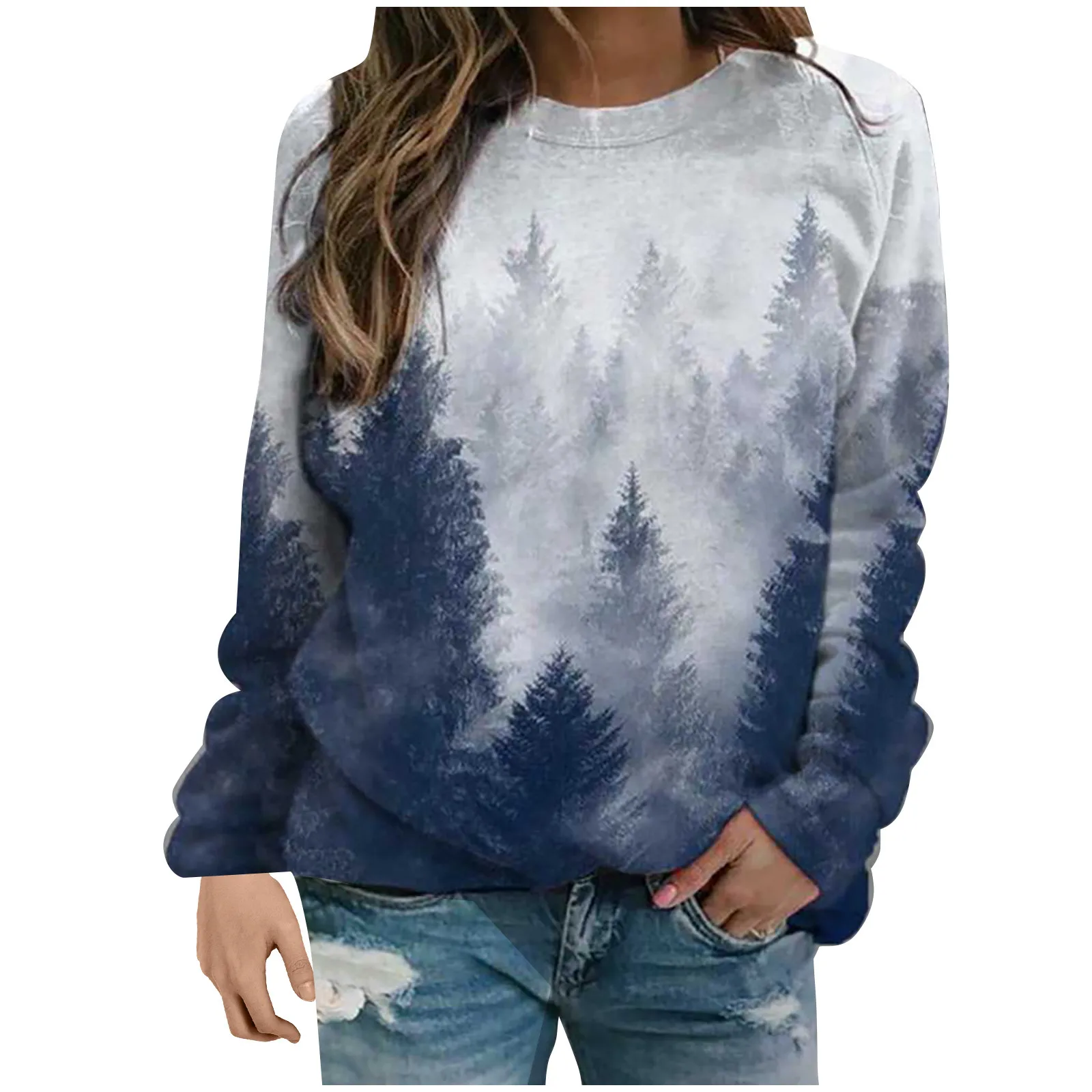Женская толстовка с капюшоном, модная толстовка с принтом в виде лесной горы, повседневный пуловер с длинным рукавом, большие размеры, Осень-зима