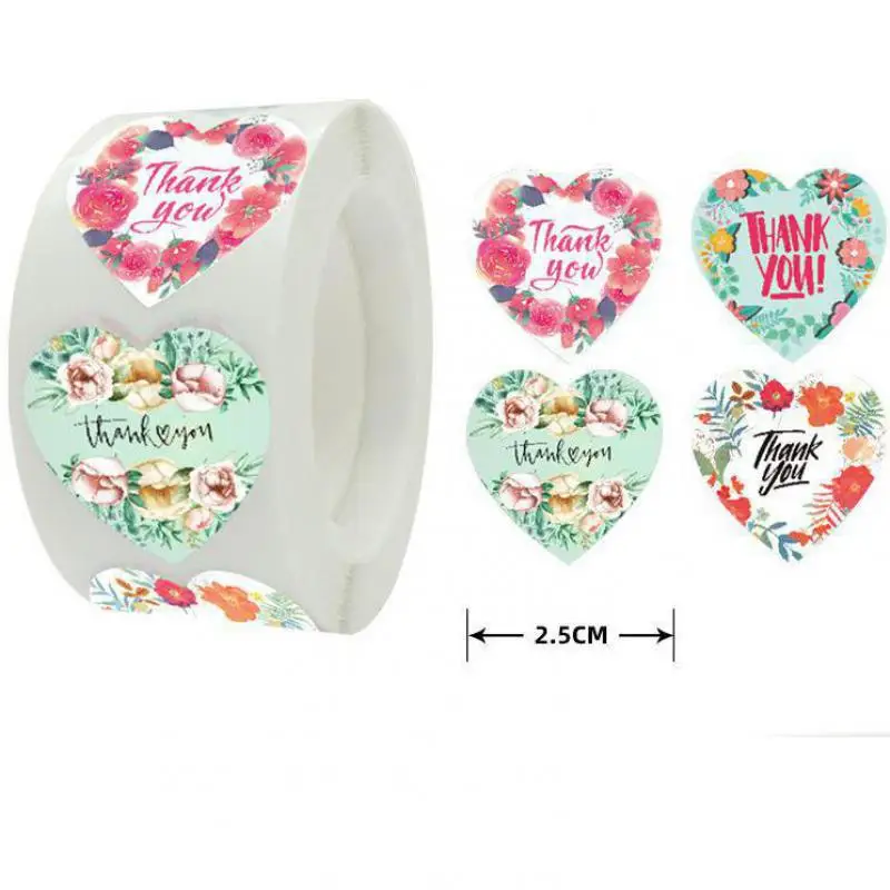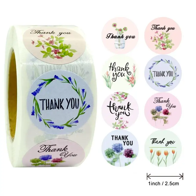 Цветы Спасибо наклейки Скрапбукинг 500 Этикетки Круглая Бумажная наклейка-печать рулонах для Украшения Свадебных конверт ручной работы подарок украшения