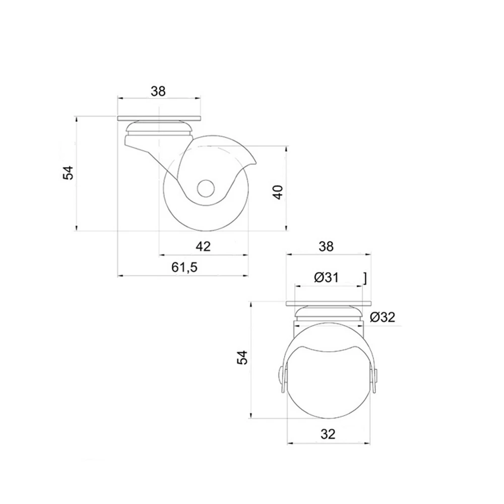 Колесо поворотное 104207 Brante 40 мм. на площадке шар серая термопластичная резина