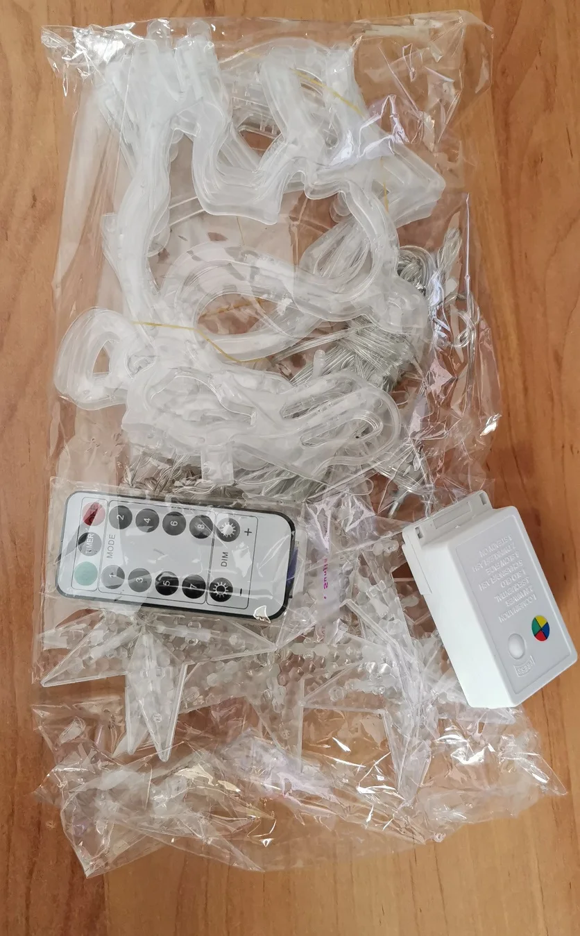 Гирлянда супер горит и моргает очень красиво , упаковка просто на высоте !!!! За упаковку отдельное - спасибо ! одну звезду убрал так как пульт без батарейки , ещё и не работает !!! А так продавца рекомендую!