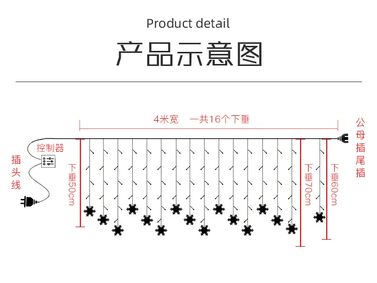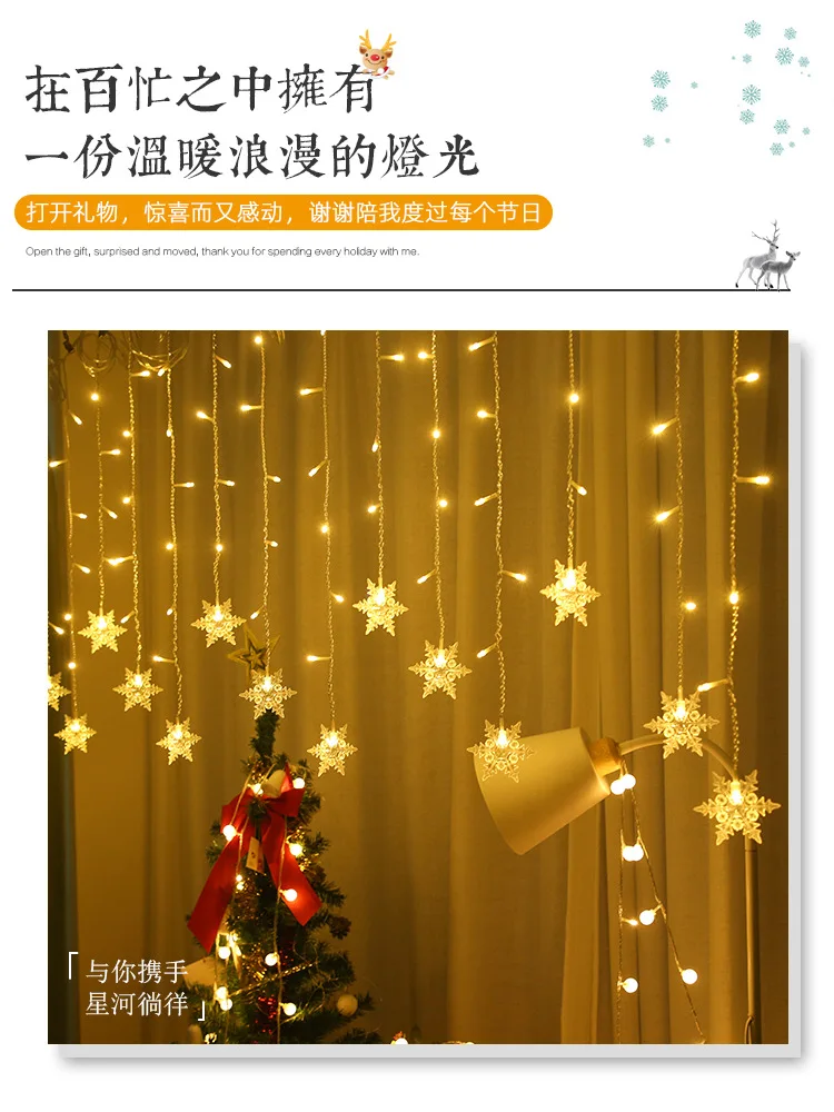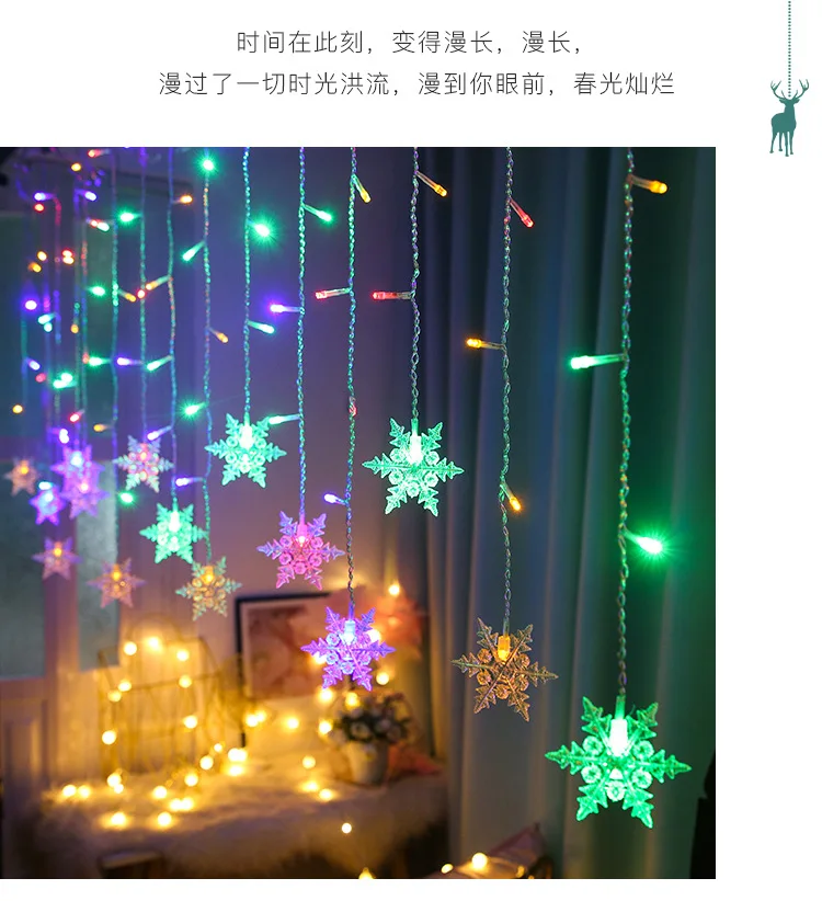 Рождественская декоративная гирлянсветильник-занавеска в виде снежи...
