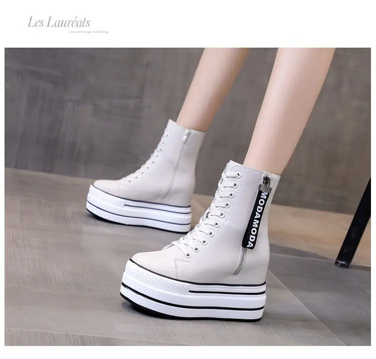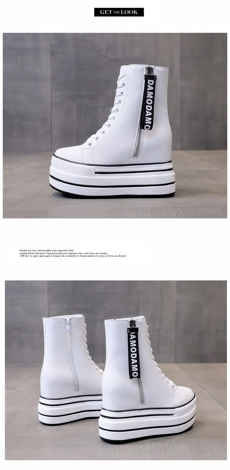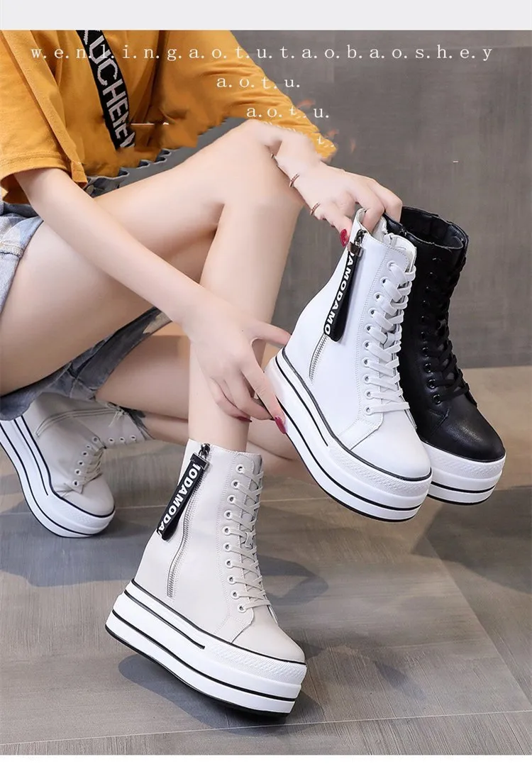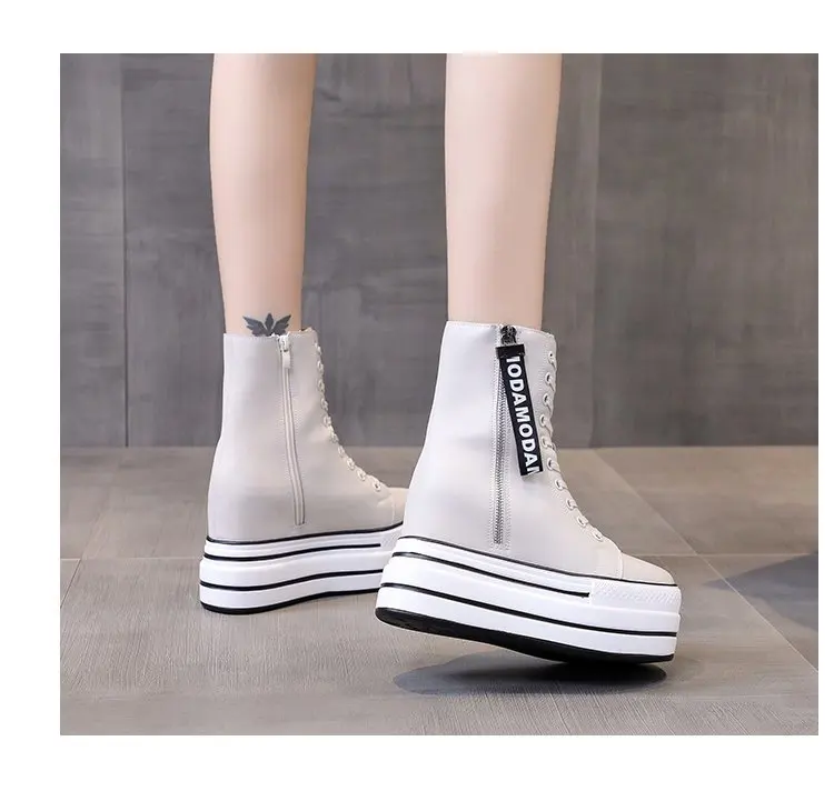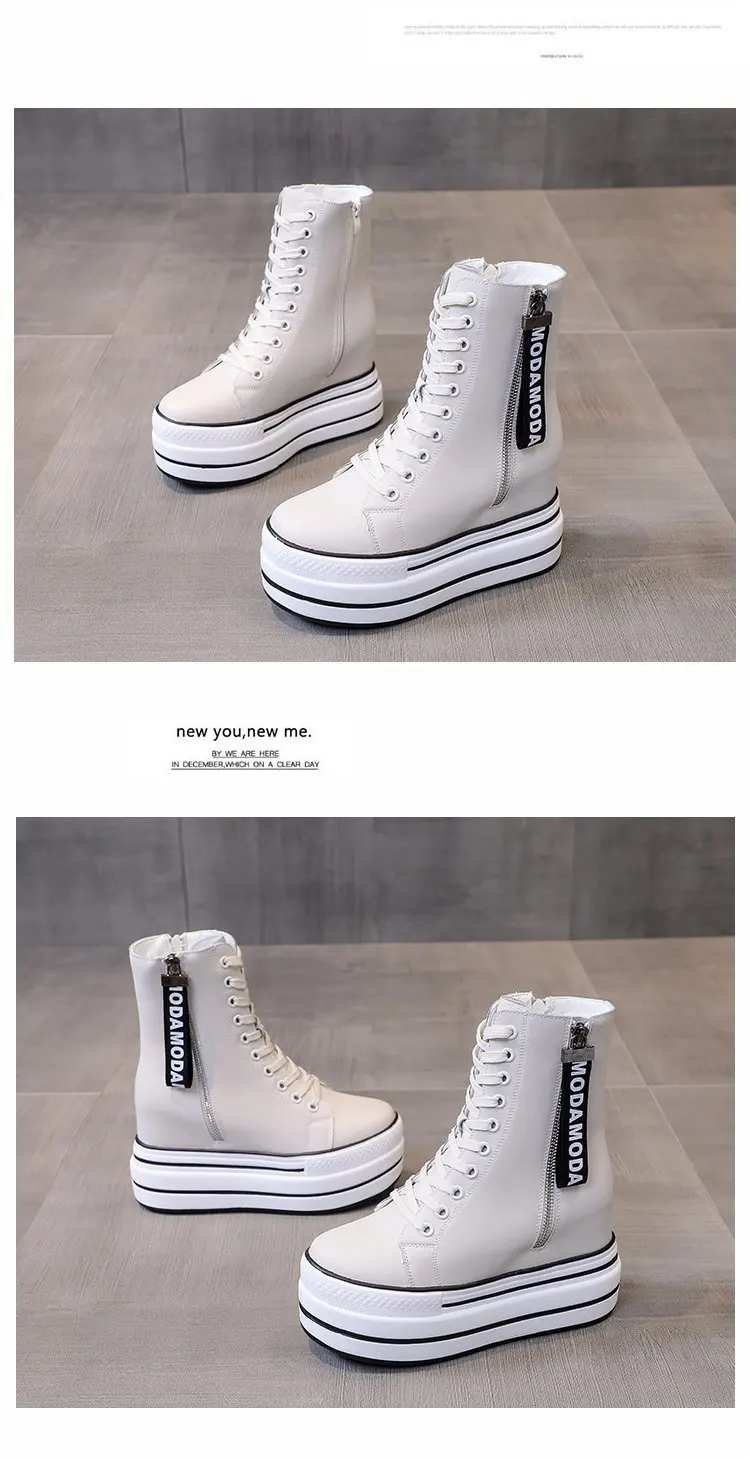 Белые трендовые ботинки, женские высокие кроссовки на платформе, ботильоны на молнии, женская обувь, женские ботинки, увеличивающие рост, уличная спортивная обувь