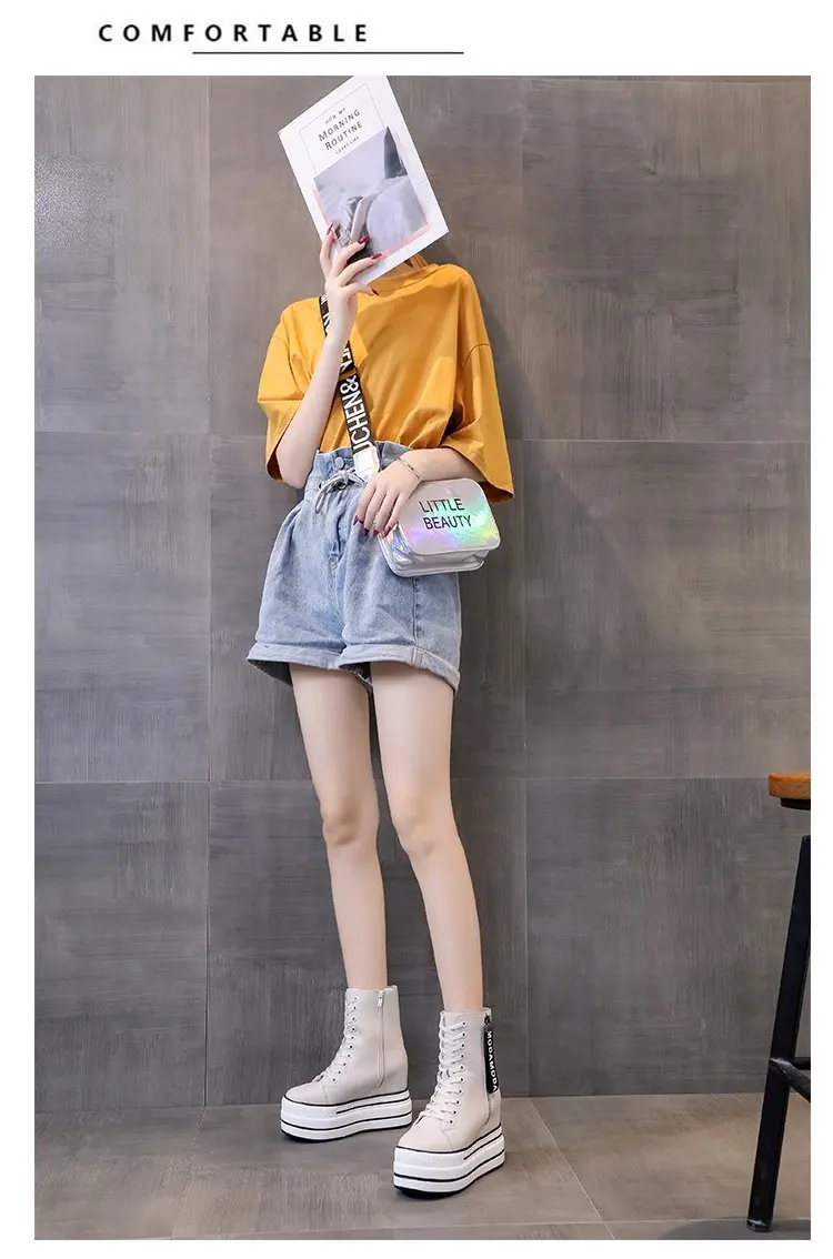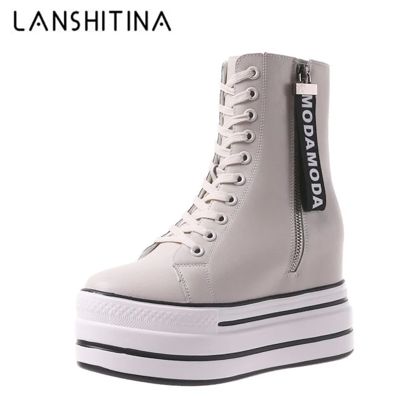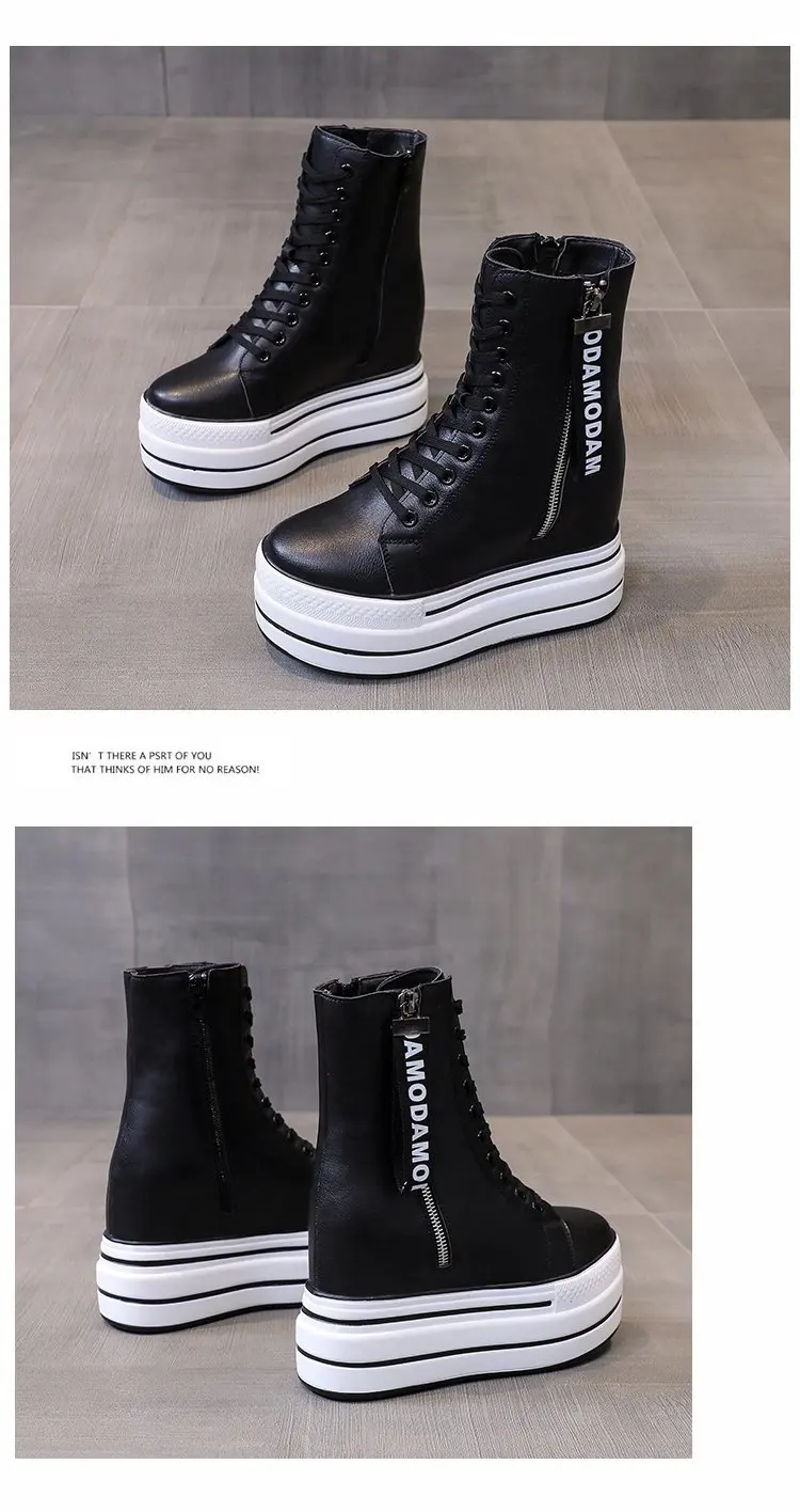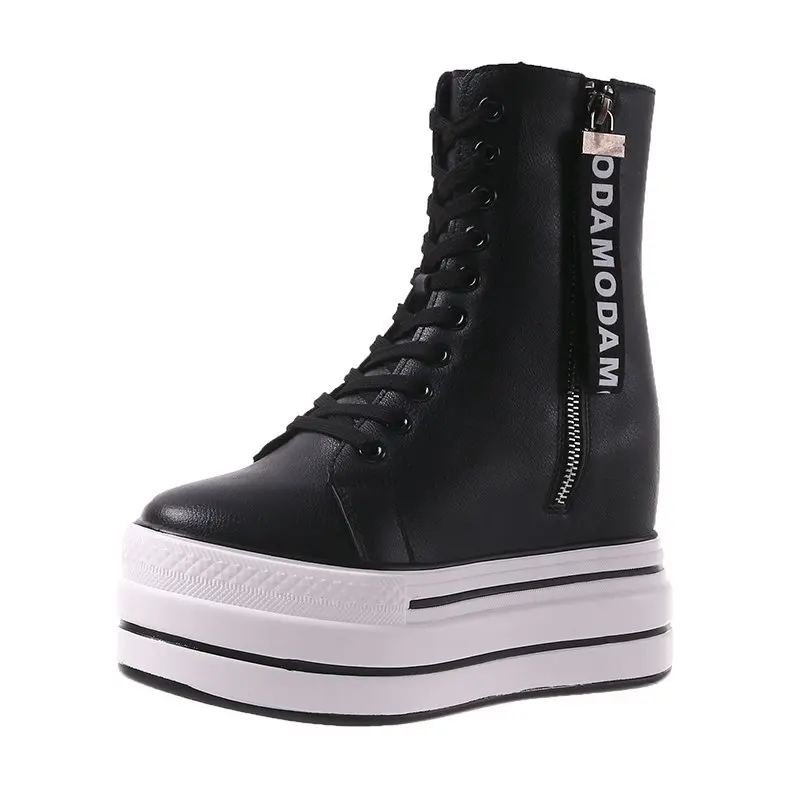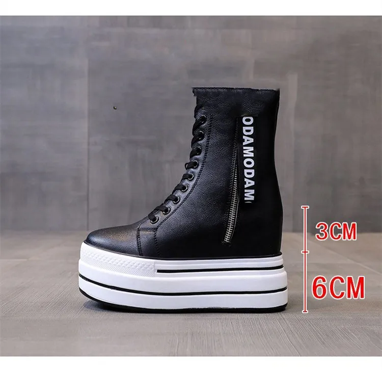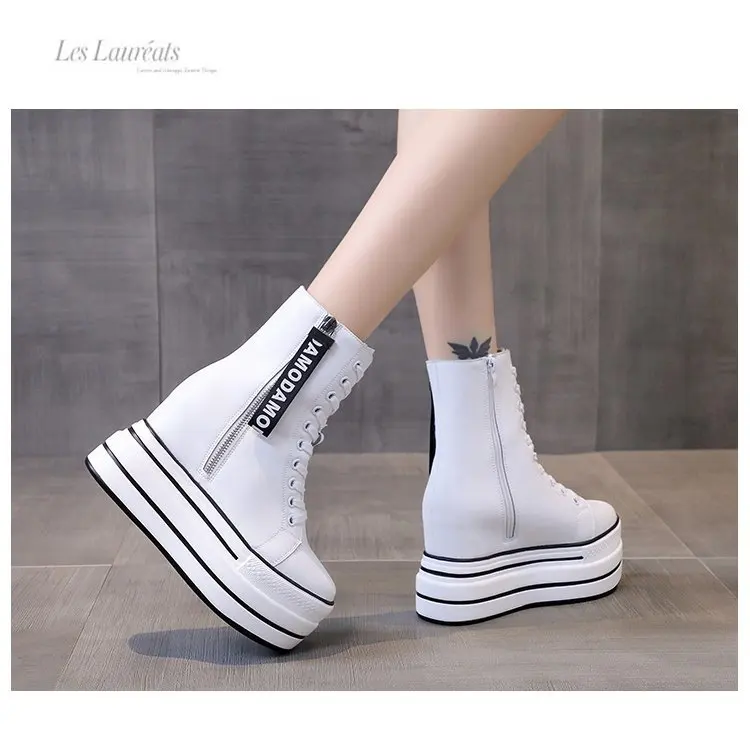 Белые трендовые ботинки, женские высокие кроссовки на платформе, ботильоны на молнии, женская обувь, женские ботинки, увеличивающие рост, уличная спортивная обувь