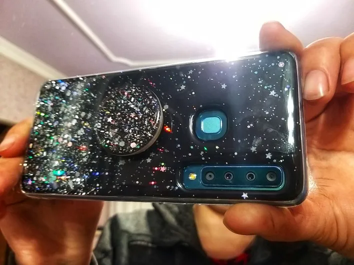 Чехол-держатель для телефона из серебристой фольги для Samsung Galaxy A9 2018, чехол A7 2018, A750, Блестящий Мягкий силиконовый чехол-подставка