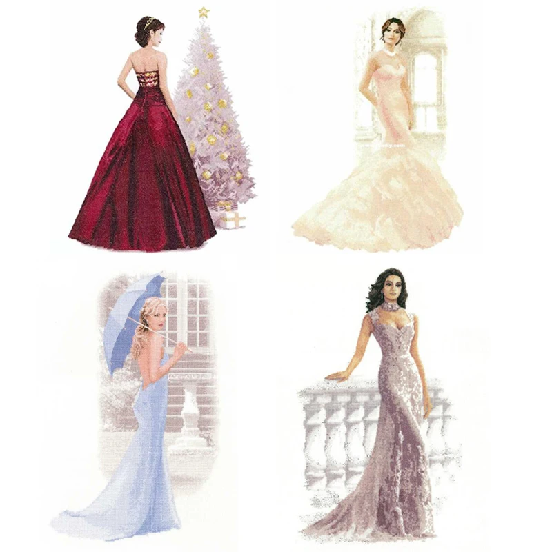 Высококачественный СчетныйКомплект для вышивки крестом, элегантное женское длинное платье с юбкой, синее фиолетовое Красное Желтое