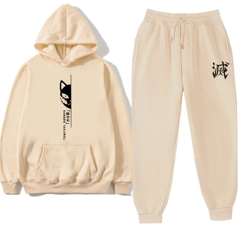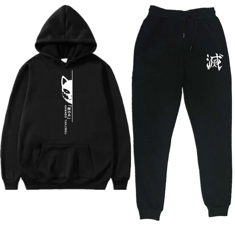 Спортивный костюм унисекс, толстовка с капюшоном и штаны для бега, на завязках, в стиле аниме Demon Slayer, для осени и зимы