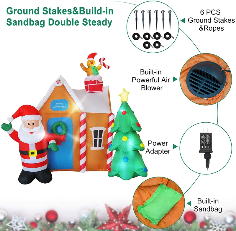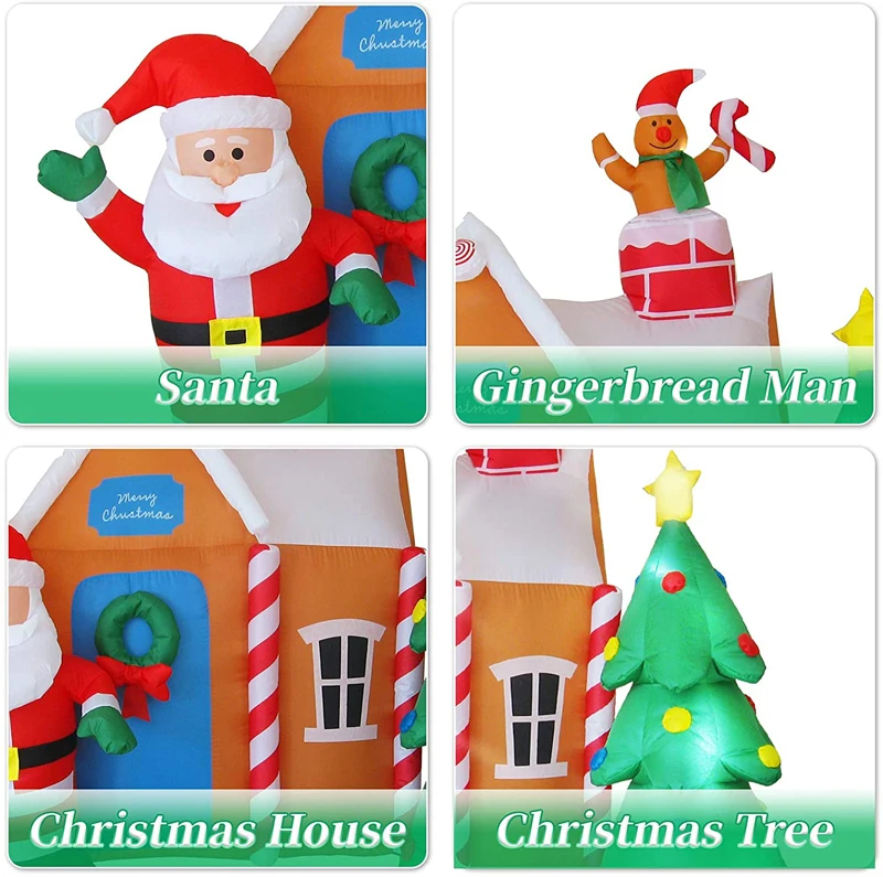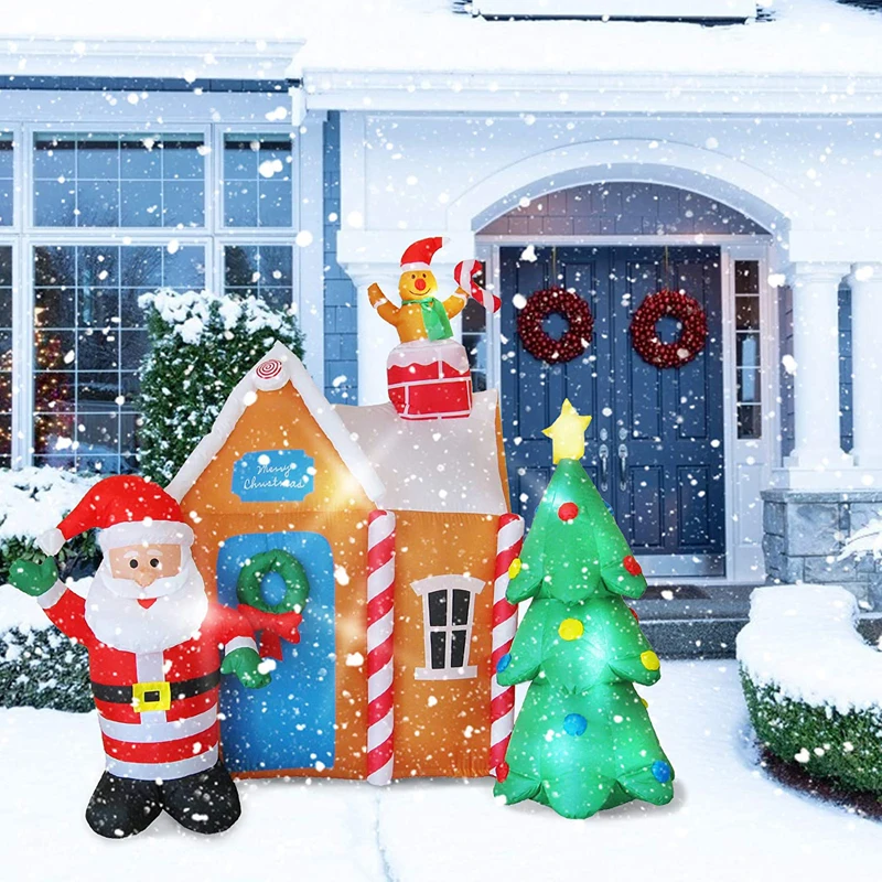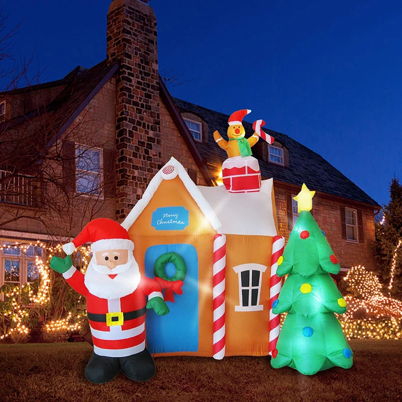 Рождественский надувной дом Санты с рождественской елкой и имбирным человеком, 6 футов, украшения для двора со светодиодной подсветкой, игрушки для рождественской вечеринки