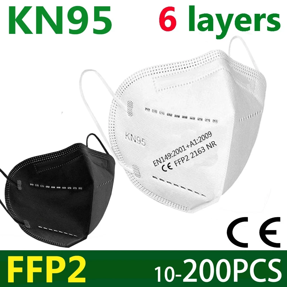 5-200 FFP2 Маска Защитная KN95 маска для лица против пыли фильтр 6-Слои рот маски Крышка многоразовые респиратор маске Быстрая доставка