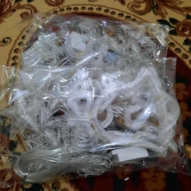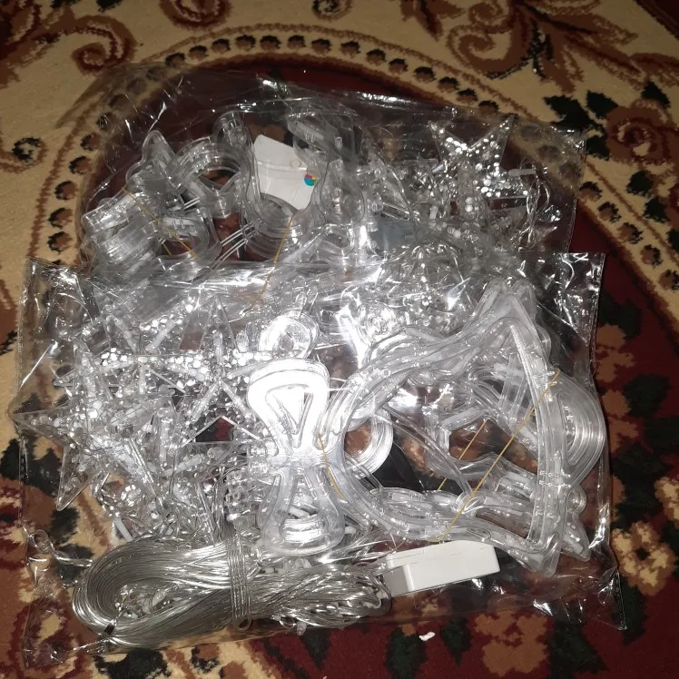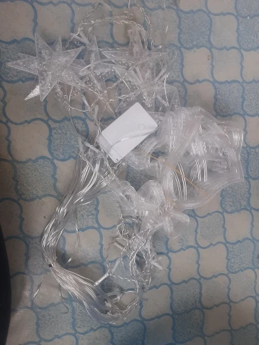 Все пришло упаковано в "пупырку". К сожалению у одной звездочки отломился кусочек. Гирлянда работает. Яркая.