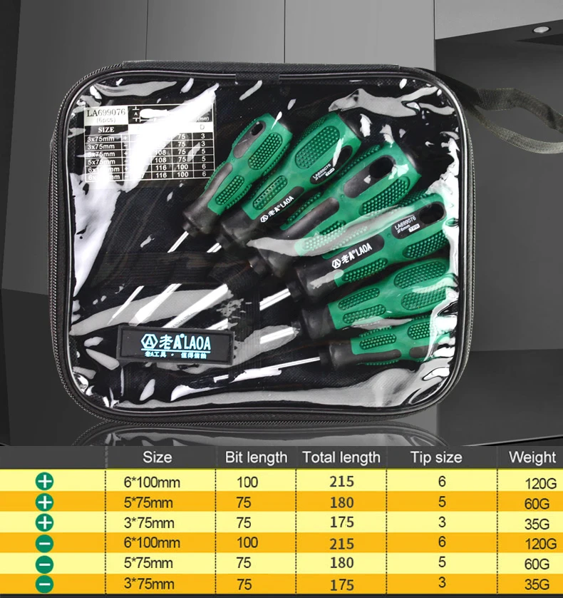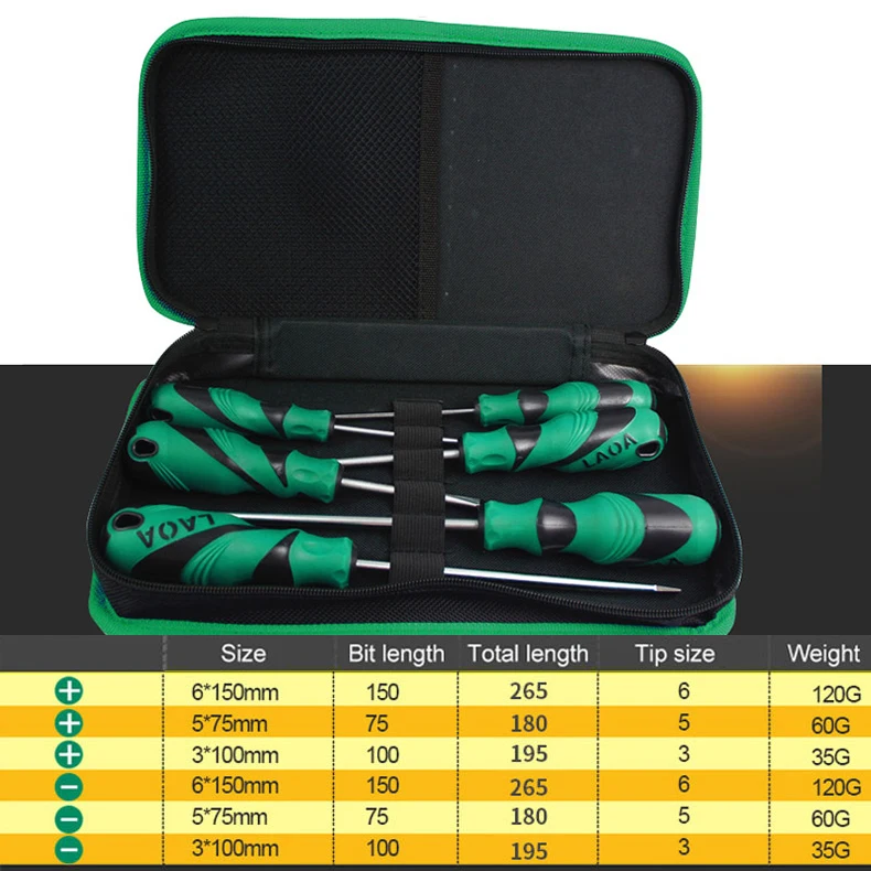 Набор отверток LAOA, 6 шт., набор отверток Philips, прямая отвертка, набор инструментов для ремонта