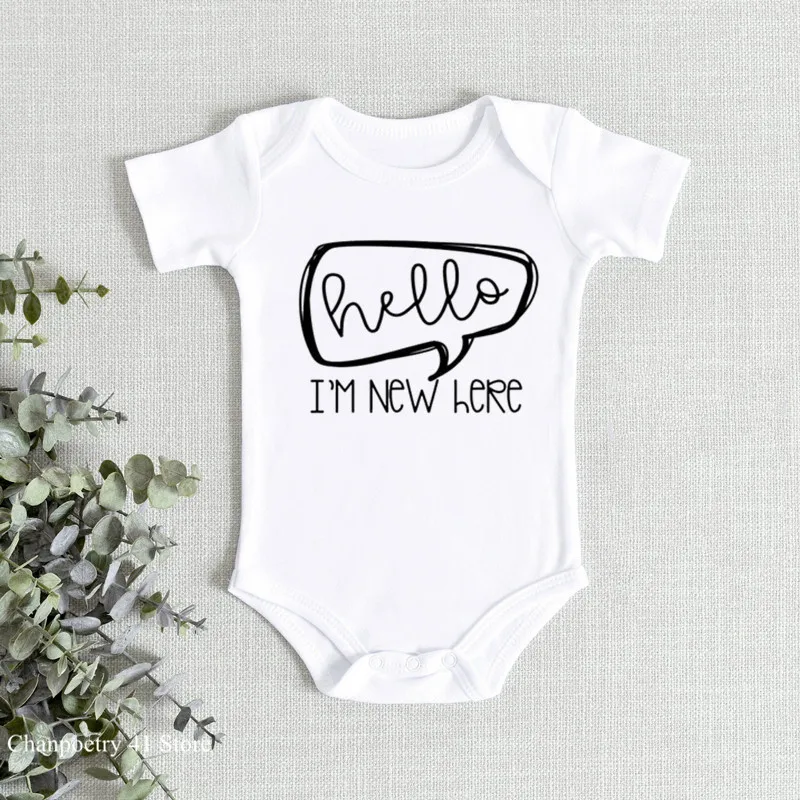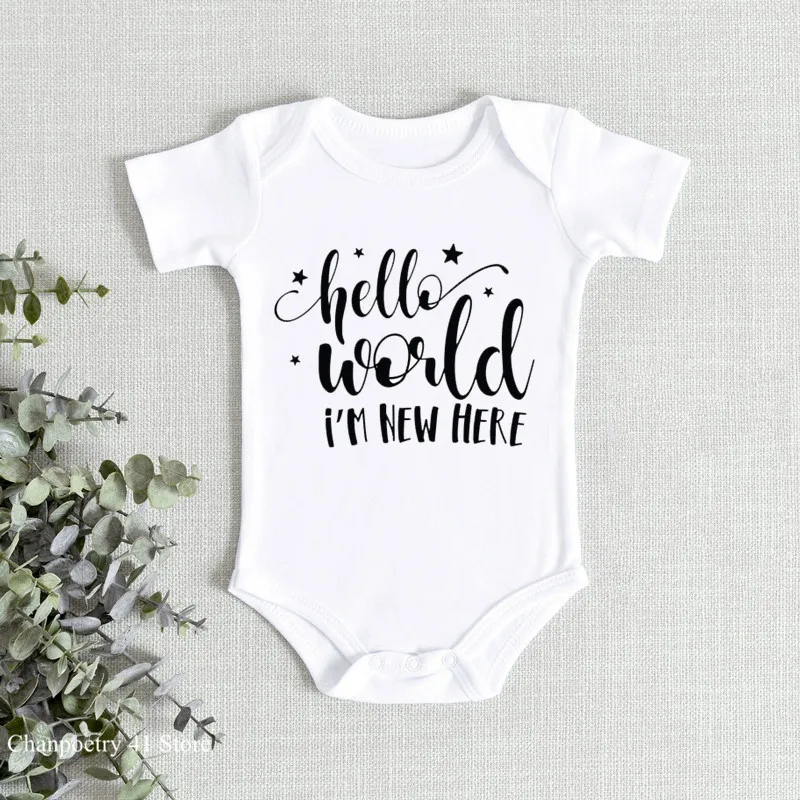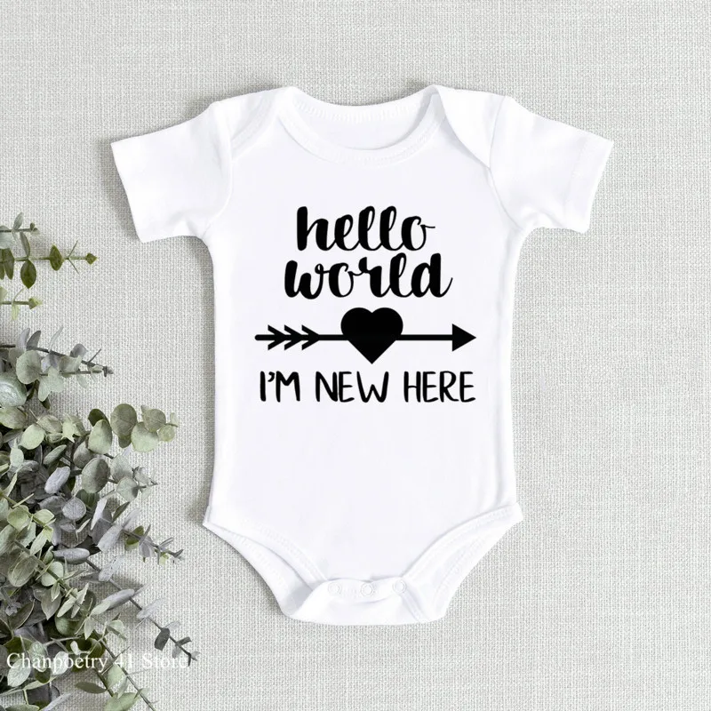 С милыми буквами с надписью Hello World I'm Here из хлопка от Carter's, детский костюмчик, с короткими рукавами, Одежда для новорожденных, одежда для маленьких мальчиков наряды для девочек на возраст от 0 до 18 месяцев