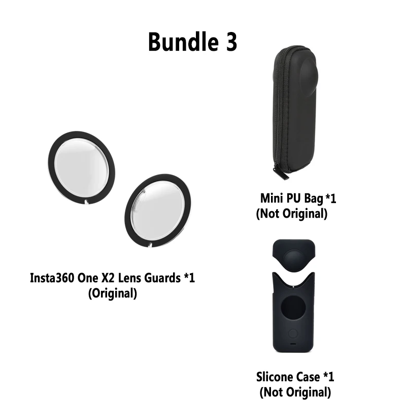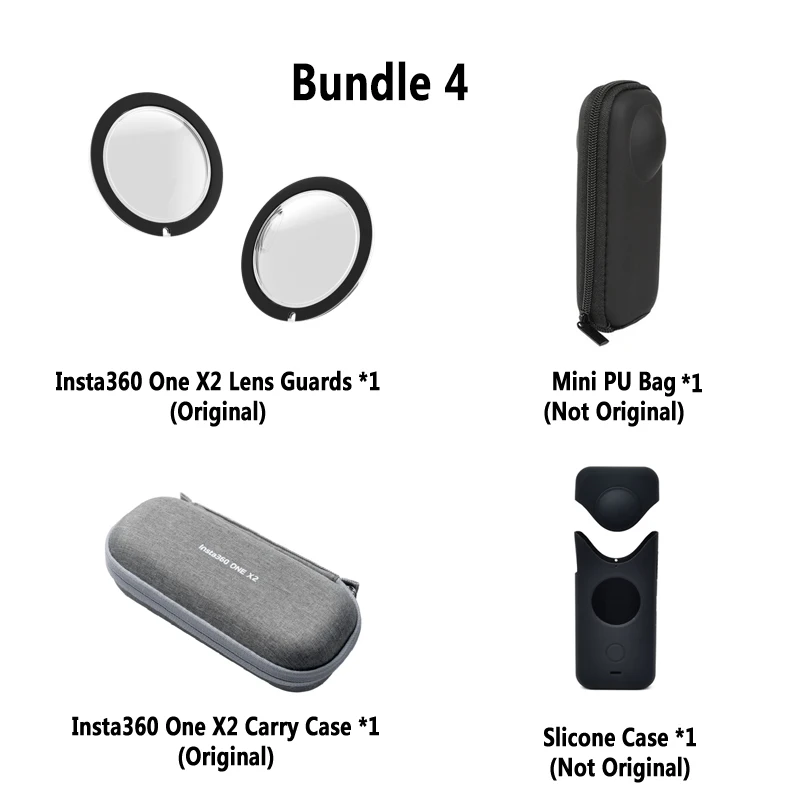 Защита объектива Insta360 ONE X2 (оригинал) * 1Чехол для переноски Insta360 ONE X2 (оригинал) * 1Мини-сумка из полиуретана (не оригинал) * 1Силиконовый чехол (не оригинал) * 1