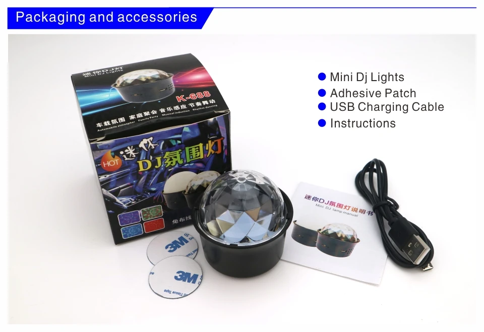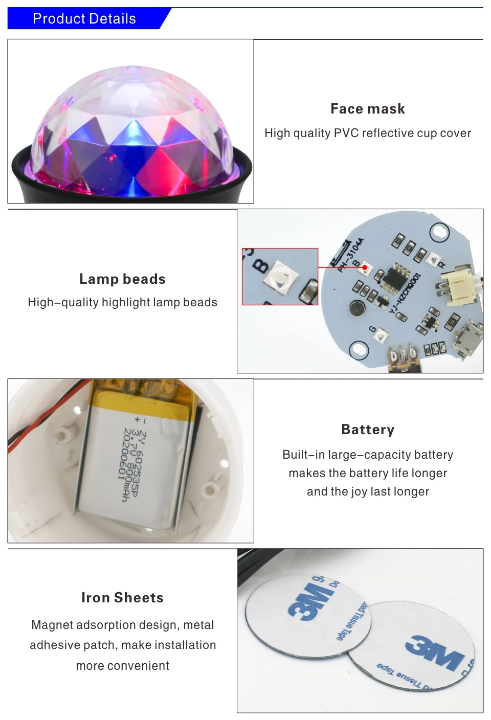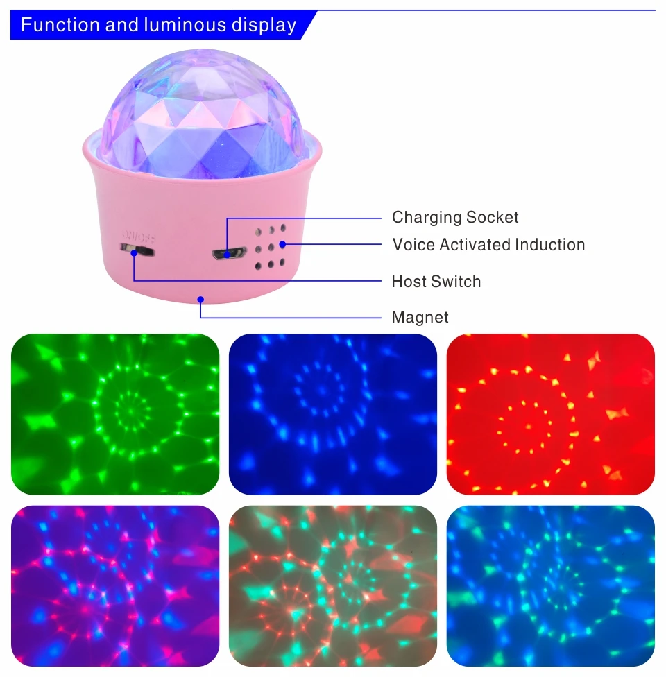Мини беспроводной диско шар светильник Музыка Звук Активированный вечерние портативный USB Перезаряжаемый автомобиль Атмосфера RGB DJ сцсветильник