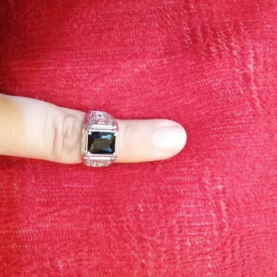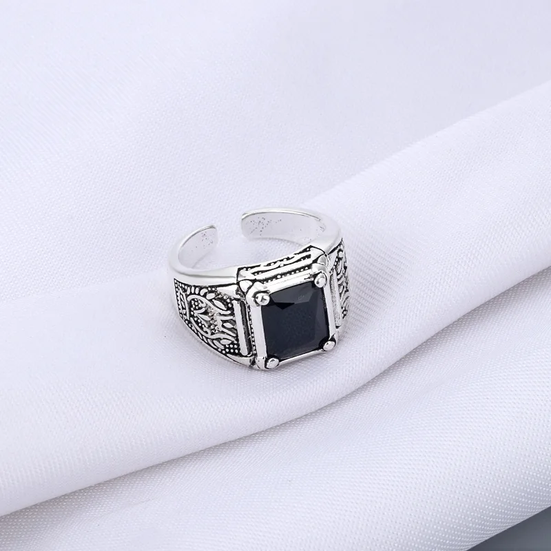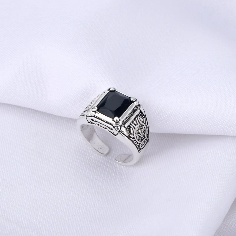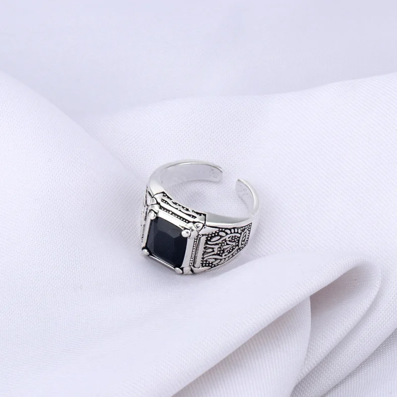 Мужское кольцо из серебра 925 пробы, с черным кристаллом