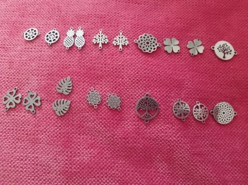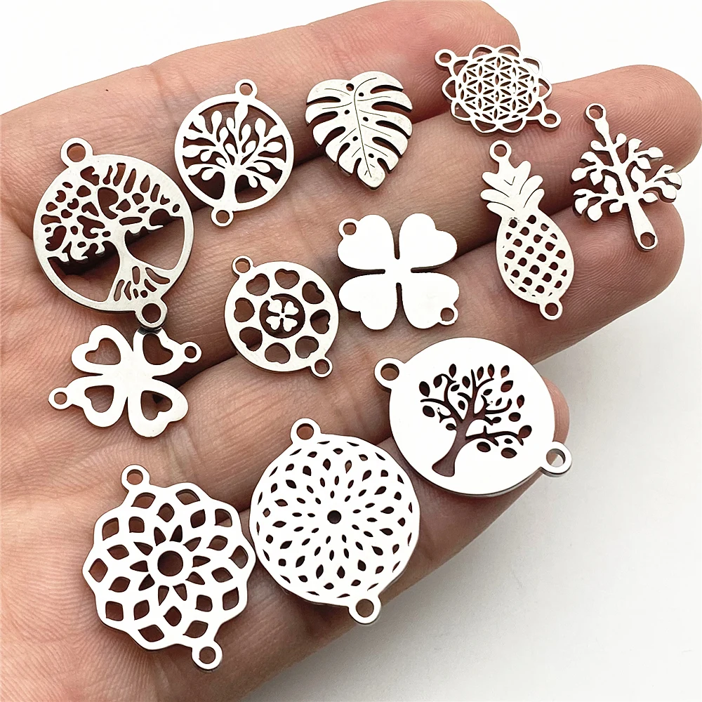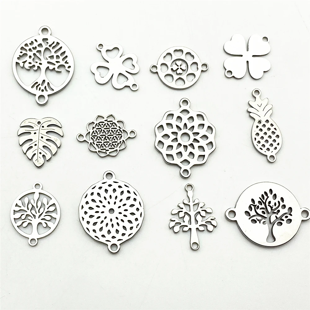Подвески из нержавеющей стали 100% для изготовления ювелирных изделий сделай сам, коннекторы-подвески в виде дерева, цветка, браслета с растениями, клевера, 12 видов, 10 шт.