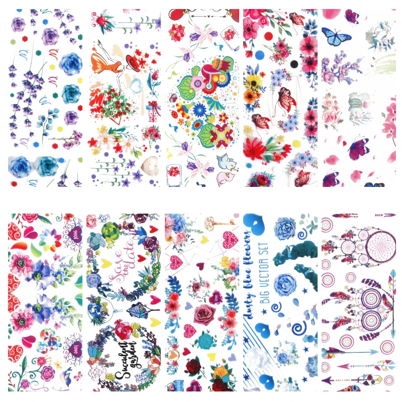 Фольга для дизайна ногтей бумагацветочный10 дизайнов100 см переводная Фольга для дизайна ногтей-набор из 10 дизайнов (коробка) Фольга для дизайна ногтей смелые цветы