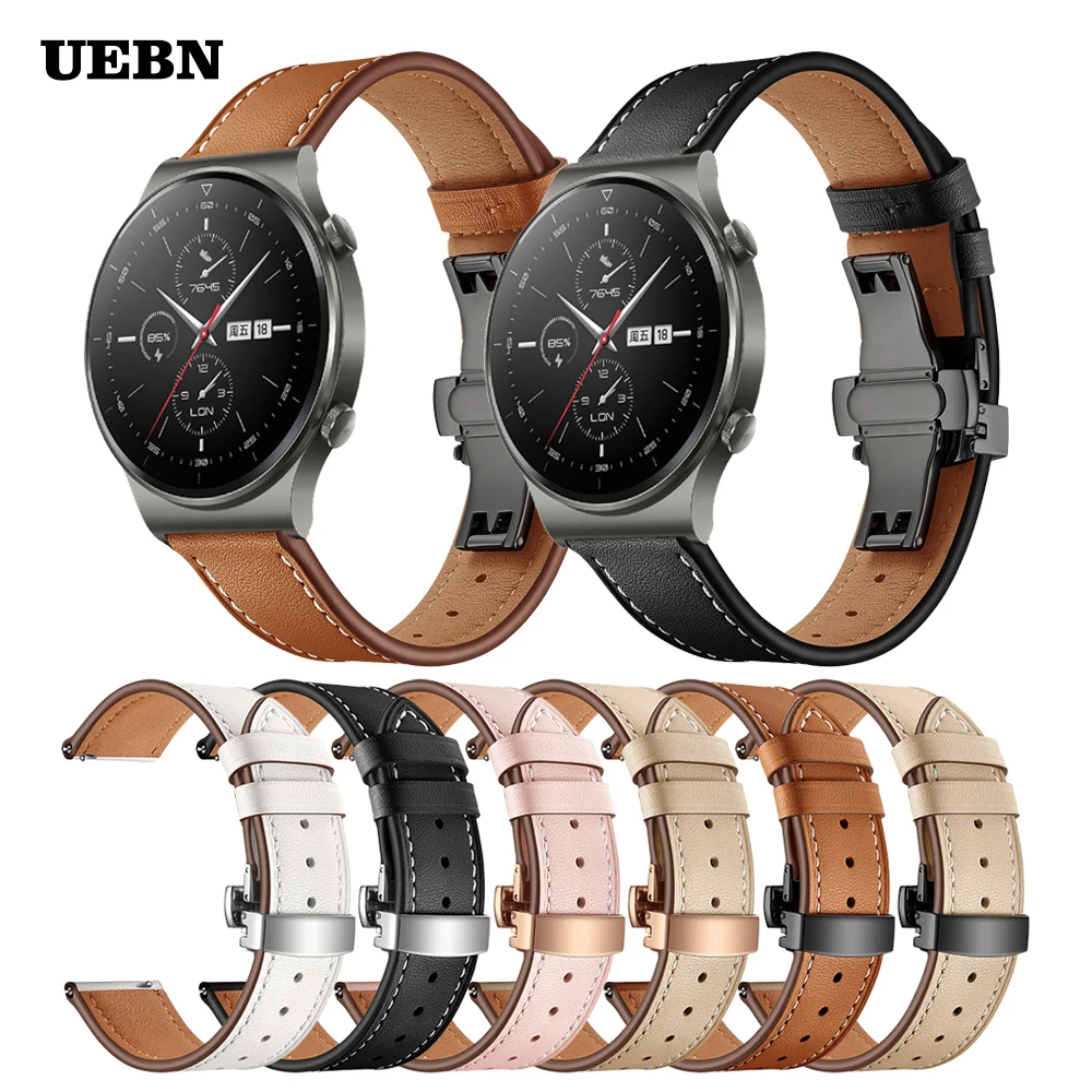Ремешок UEBN кожаный с застежкой-бабочкой для часов Huawei Watch GT 2 Pro, браслет для часов GT 2 42 мм 46 мм и 2e