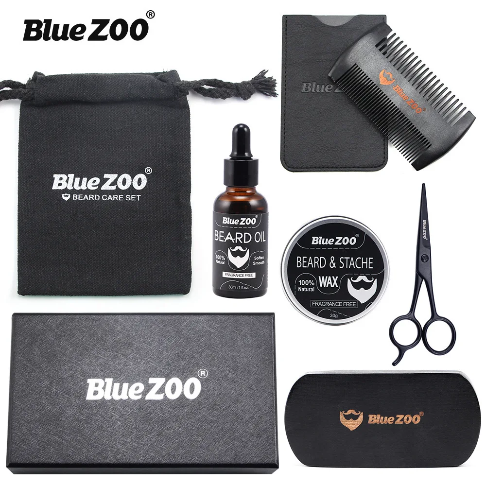 Популярный мужской набор для роста бороды, 7 шт.компл., питательное масло для бороды, стальные ножницы, гребень из груши, современный набор для ухода за бородой