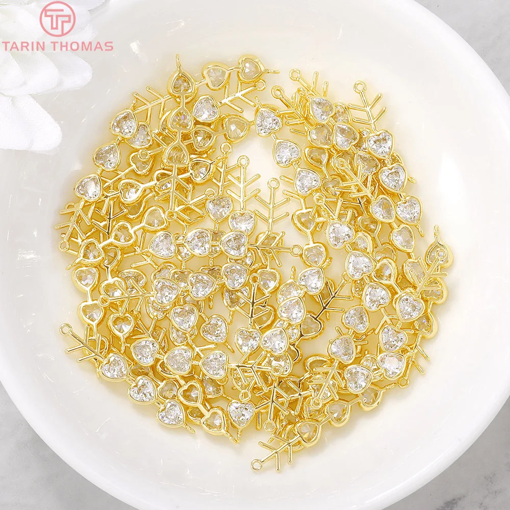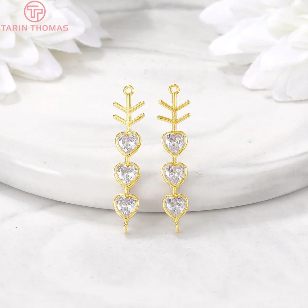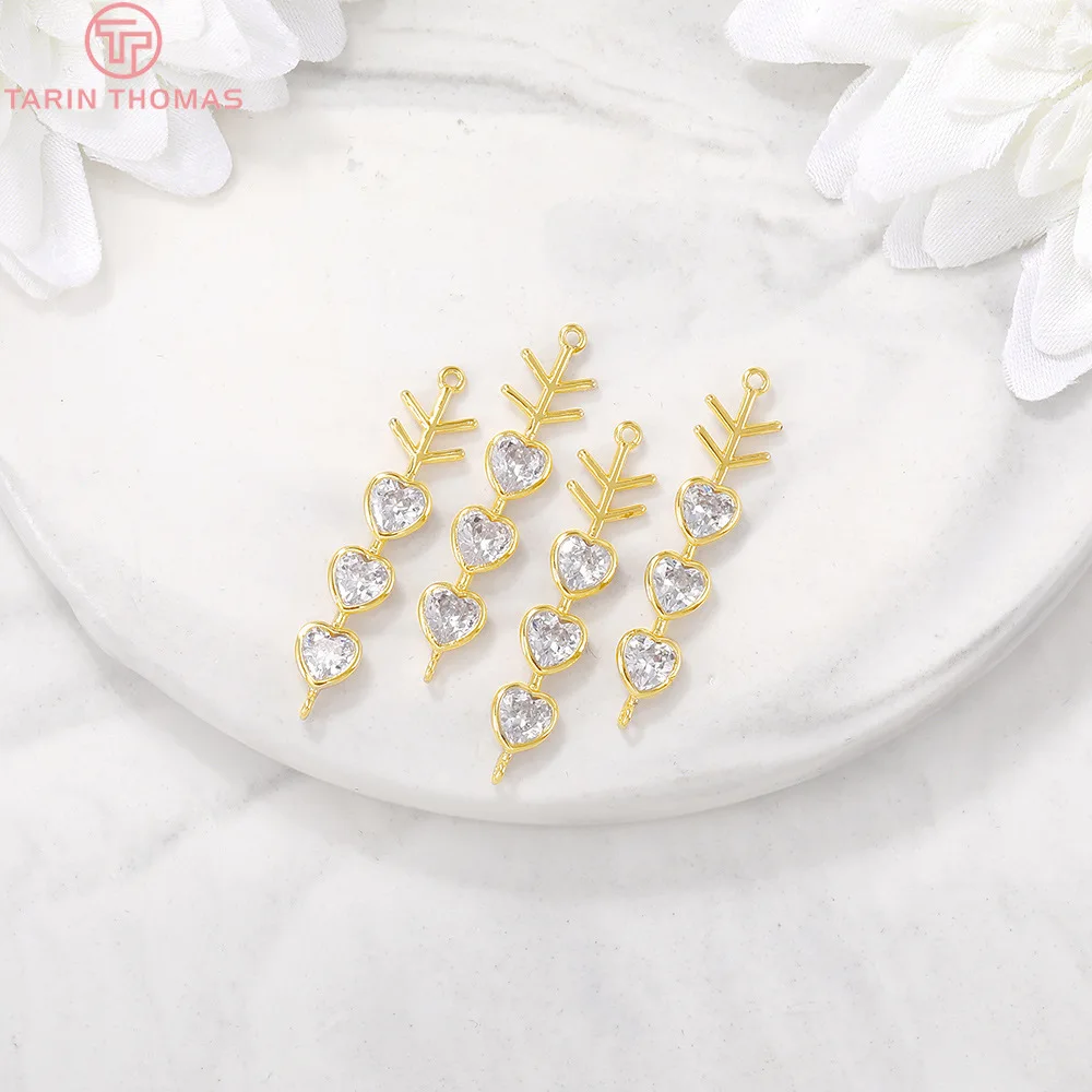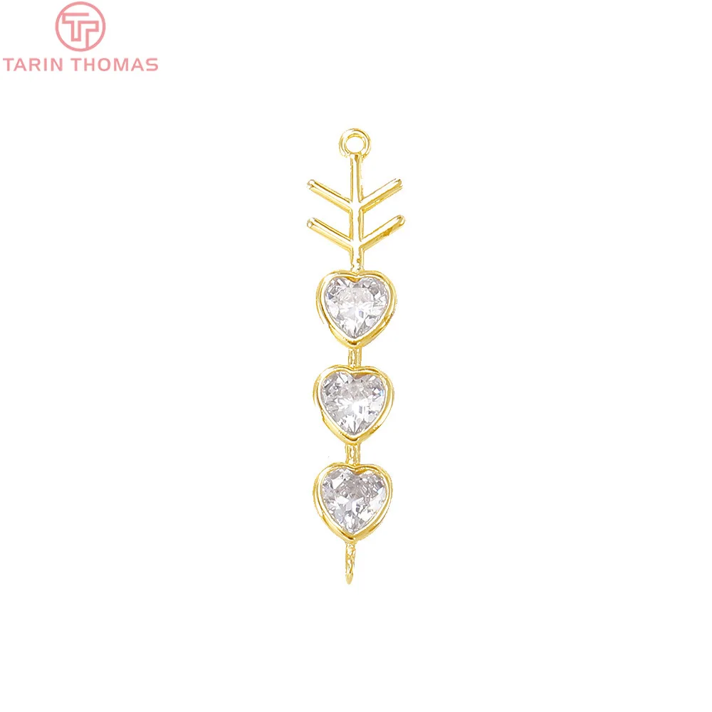 (1363)4 шт. 3x27 мм латунь с покрытием 24-каратным золотом и цирконом, подвеска с тремя сердечками, соединитель, высококачественные ювелирные аксессуары