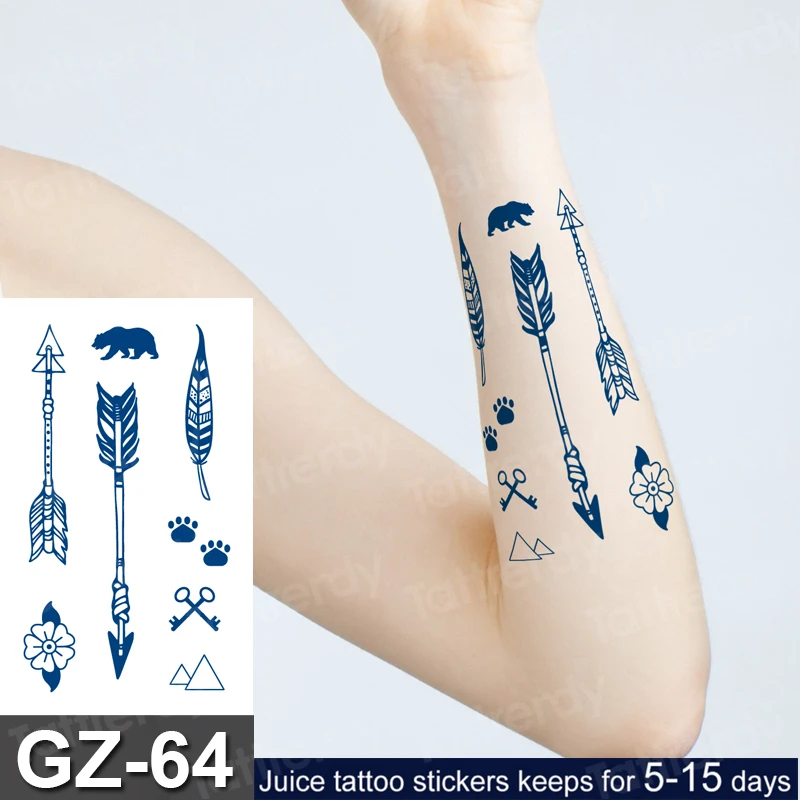 Водостойкая Временная тату-наклейка с чернилами, стрела, цветок, рыба, Фруктовый гель, стойкая тату для тела