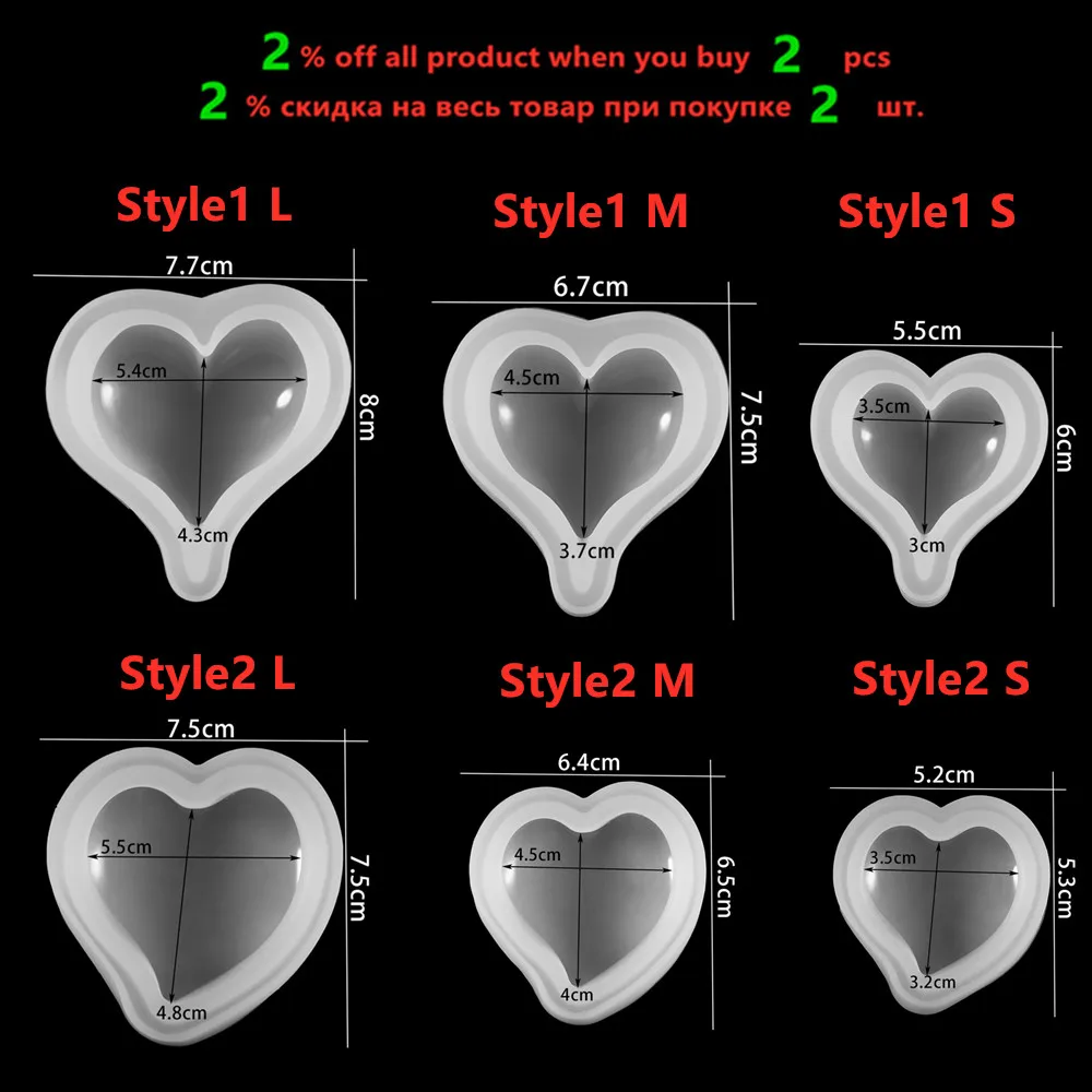 2 вида стилей 3 размера силиконовые формы в форме сердца, форма для литья эпоксидной смолы для поделок, изготовления ювелирных изделий, аксессуары Подвески, украшения
