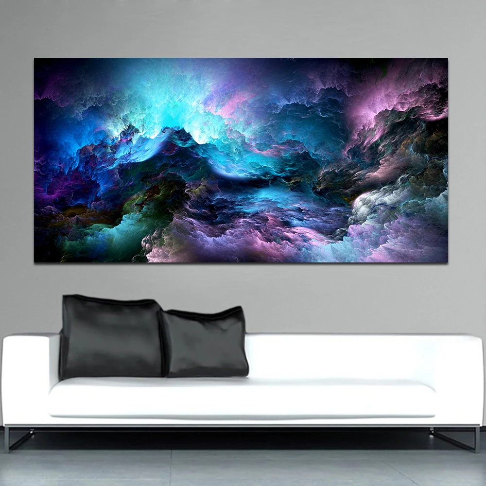 Большой размер, настенное искусство, облако, абстрактная Красочная картина маслом, Декор, синий для холста, картина, картина без рамки