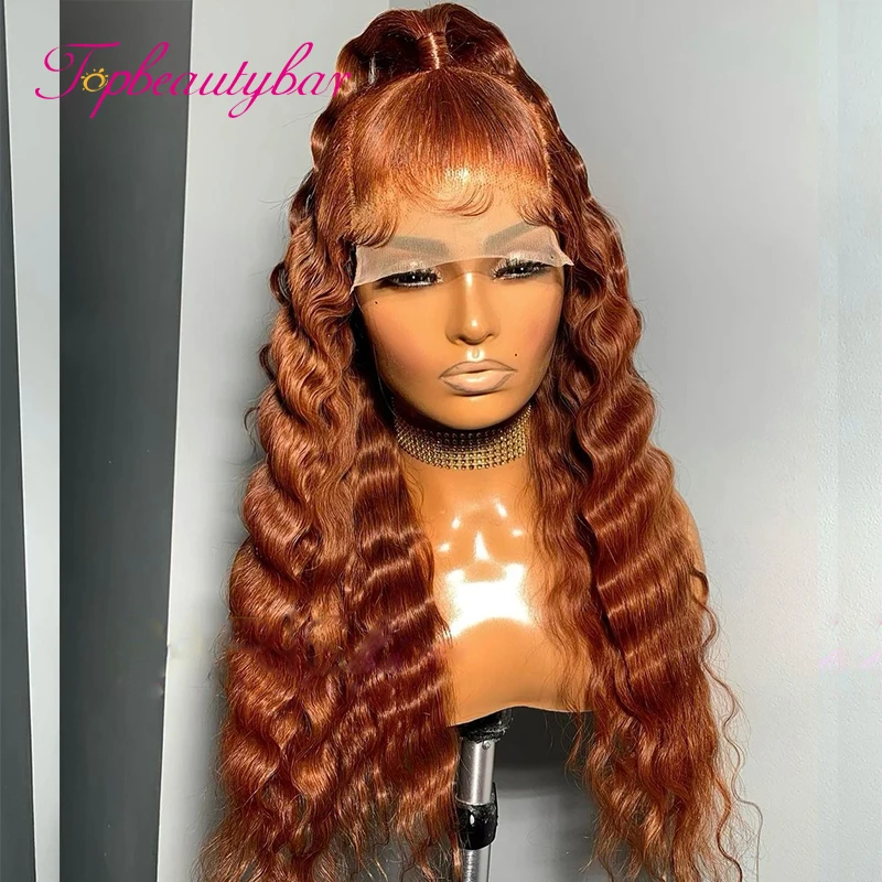 Парики из натуральных волос оранжевого имбиря, глубокая волна, 180%...