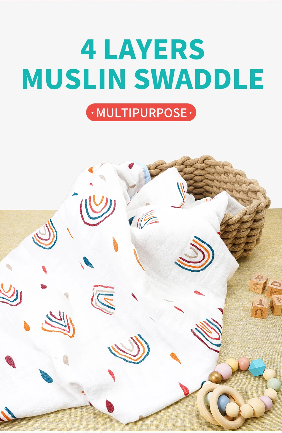 Муслиновое одеяло Kangobaby # My Soft Life #, 4 слоя, 100% хлопок, разноцветное, с изысканными краями, для новорожденных