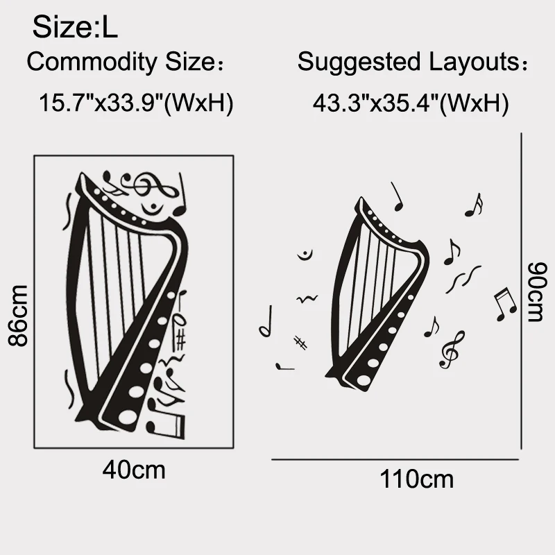 Классическая арфа Наклейка на стену музыка Гостиная ТВ фон инструменты Музыка Наклейка на стену спальня школьный Декор