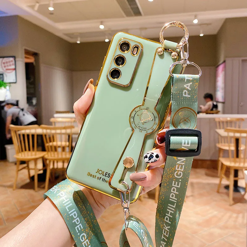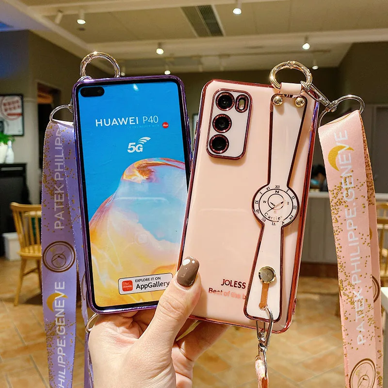 Чехол-подставка с ремешком на запястье для Huawei P40 P30 P20 Pro P20 P30 Lite Mate 20 30 Pro, чехол с покрытием на шею и ремешком