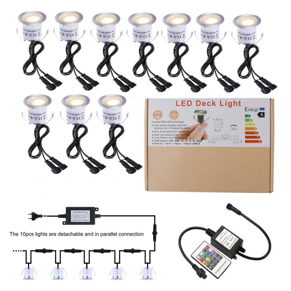 Характеристика:1) Мини Размеры дизайн: 32 мм (1,25 дюймов) x H22mm (0,8 дюймов) Мини Размеры s, которые могут светильник на данный момент двор2) Энергосбережение и дизайн окружающей среды: работа с 12 вольтами (низкое напряжение) постоянного тока, энергосбережение и экологичность.3) съемное и параллельное подключение: 10 шт. ламп являются съемными и параллельными, вы можете установить их только в соответствии с вашими потребностями.4) гарантия безопасности: светодиодный светильник IP67 водонепроницаемый, безопасный для использования в помещении и на улице5) в основном используется: квадраты, шкафы, углы, потолки, коридоры, сады, террасы, дворы, ступени, палубы корабля и другие украшения и украшения.Характеристики:Название продукта: светодиодный светильникШина: Материал: нержавеющая сталь + ПоликарбонатТип светодиодный: SMD2835Цветовая температура: RGBАдаптер: вилка-США/ЕС/Великобритания/АвстралияВход: AC90-264V 50 / 60HZВыход: DC12VМощность: 0,6 Вт/шт.Световой поток: 50-80 лм/светильникСрок службы: более 50000 часовВодонепроницаемость: IP67 водонепроницаемыйРазмер одиночной лампы: 32 32*22*2222 ммДлина кабеля: 100 см/39,4 дюйма (на светильник)Длина вилки: 3 мПримечание: Если вы покупаете товар «только 1 шт. светильник», вы получаете только 1 шт. напольный светильник, не включайте разъем питания1 шт. штепсельная вилка макс может управлять 20 шт. лампамиПосылка:Светильник-1 шт. = напольный светильник-1 шт., штепсельная вилка-не входит в комплект поставки6 шт. EU/UK/US/AU набор = 6 шт. палубные огни + 1 шт. адаптер питания + пульт дистанционного управления + комплект установки10 шт. EU/UK/US/AU набор = 10 шт. колоды + 1 шт. адаптер питания + пульт дистанционного управления + комплект установки