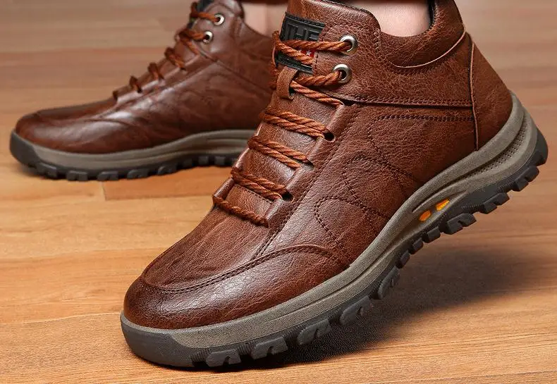 Зимняя новая мужская хлопковая обувь с верхом из микрофибры, водонепроницаемая Нескользящая уличная походная обувь, Вельветовая теплая обувь на плоской подошве с высоким верхом