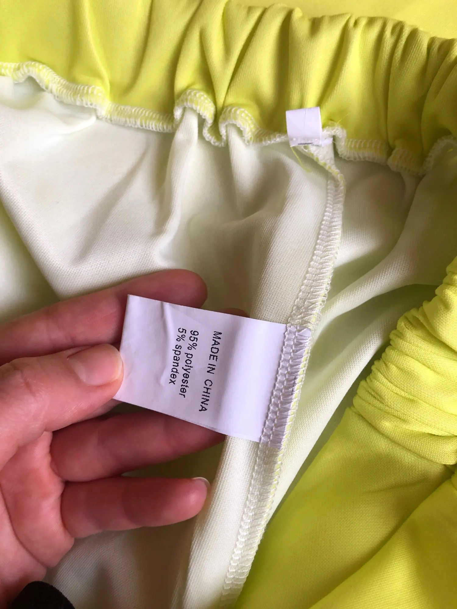 ткань отстой, ничего не оверложено, просто отрезано, шорты просвечивают, тоже не подшиты, S ка огромная, в общем в реале не купила бы