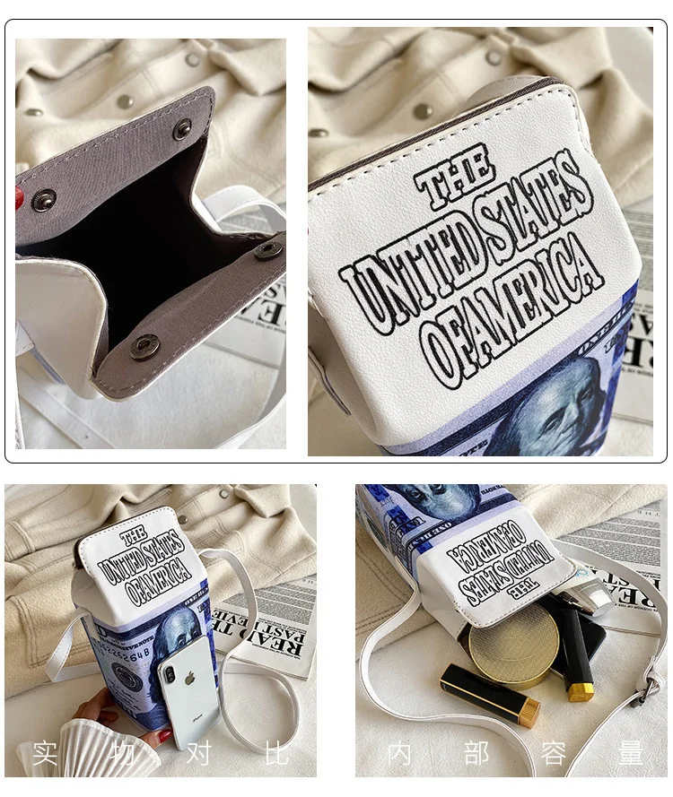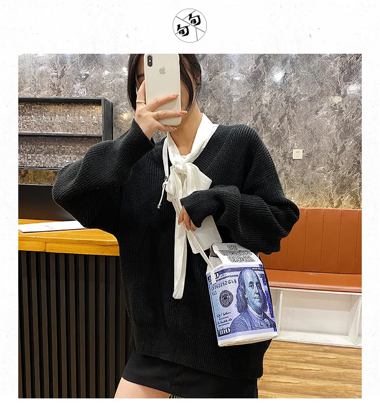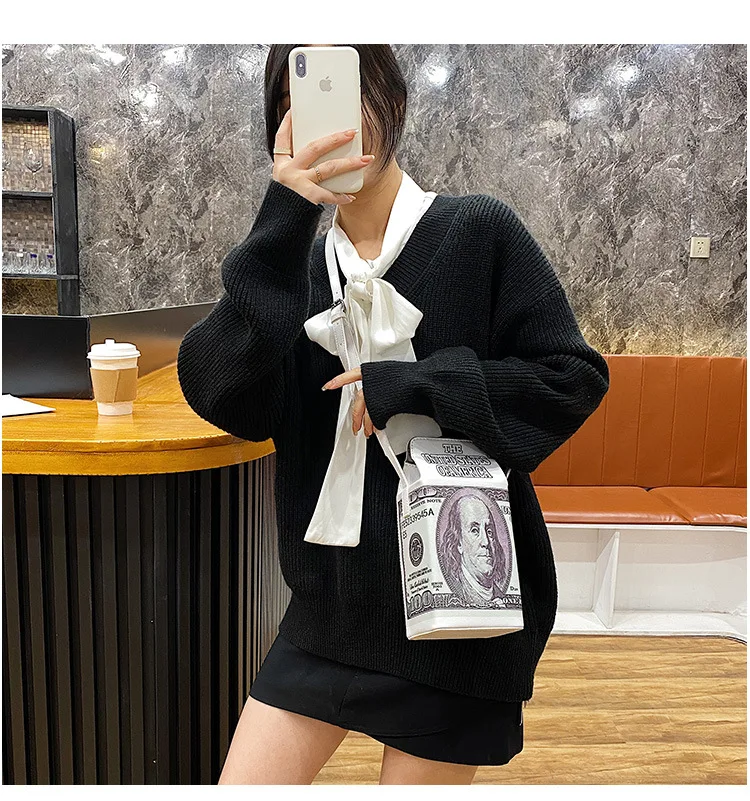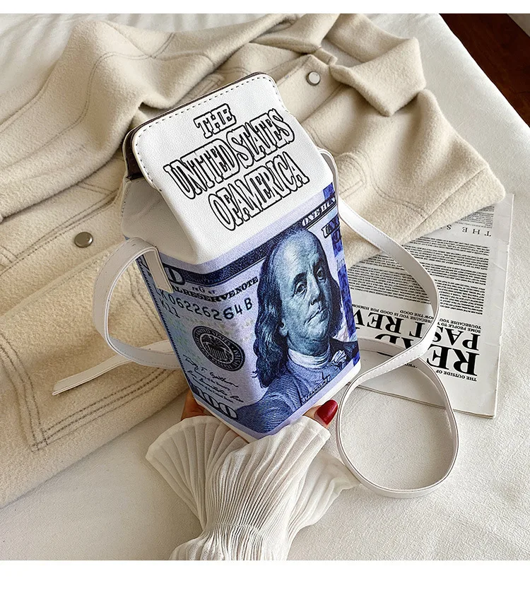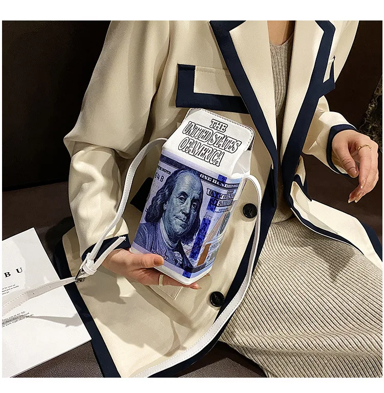 Забавный дизайн долларов, сумка для денег, молочная коробка, сумка ...