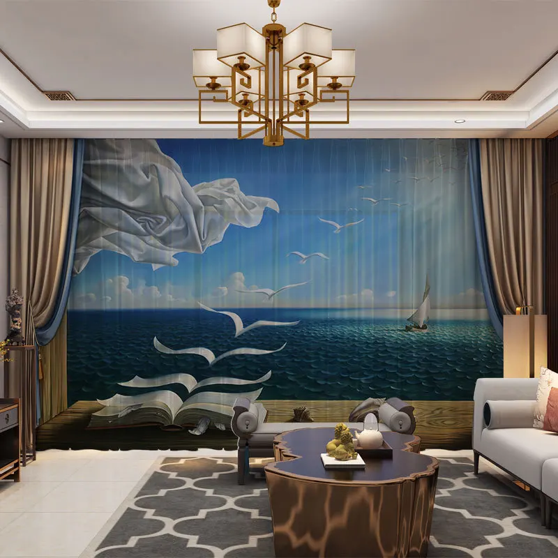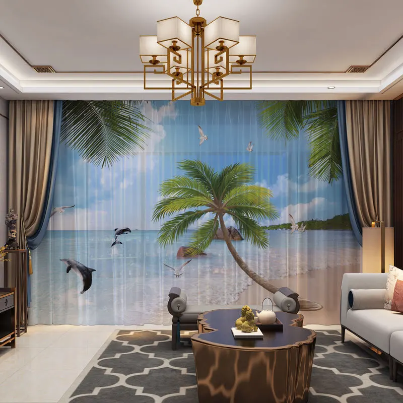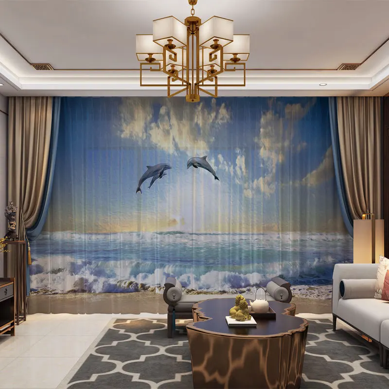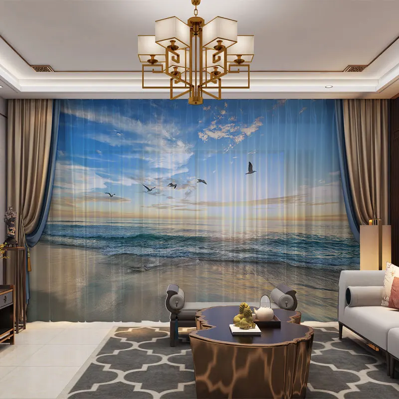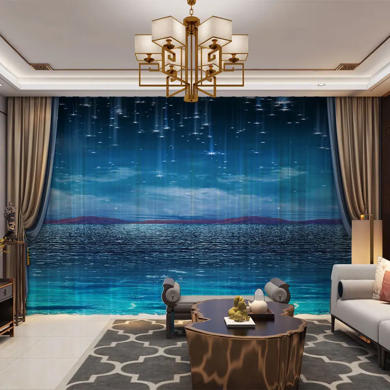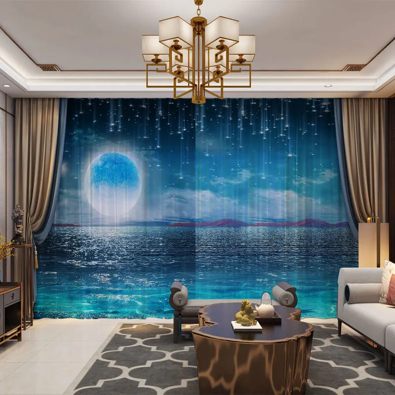 3D фото Луна морское море шторы драпировка панель прозрачный тюль украшение дома гостиная спальня Винтаж