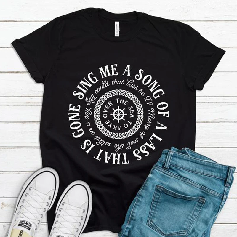 Футболка с надписью Sing Me a Song, Скай, лодка, Аутлендер, книжный сериал, футболка с Джейми Фрейзером, кланом Фрейзера, сериал, футболка Sassenach
