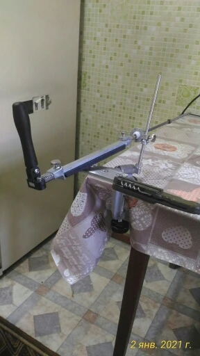Точилка для ножей (и др.инструмента) понравилась. Она имеет также название "Точильный станок RUIXIN PRO 4" и продаётся в магазинах России (например, в "OZON"), только, естественно, дороже... Я давно слежу за выходом в продажу на AliExpress разных точилок для ножей, но они меня чем-то всё время не устраивали. Эта же сразу приглянулась своим удобством в использовании: 1) во-первых, своим поворотно-зажимным механизмом (360°) для удержания ножа или др. инструмента — можно, не снимая крепления, быстро переворачивать, чтобы точить другую сторону лезвия; 2) креплением струбциной к какой-нибудь столешнице; 3) быстрой сменой камней (хотя, есть устройство с креплением сразу четырёх камней, что, видимо, ещё упрощает и ускоряет процесс заточки)... Недостатки: при выставлении угла заточки крепление направляющей к стойке выполнено в виде шайбы, которую нужно затягивать вручную, поэтому поменял её местами с ограничителем направляющей (для затяжки ключом). В Адлер доставка месяц. Товар РЕКОМЕНДУЮ!
