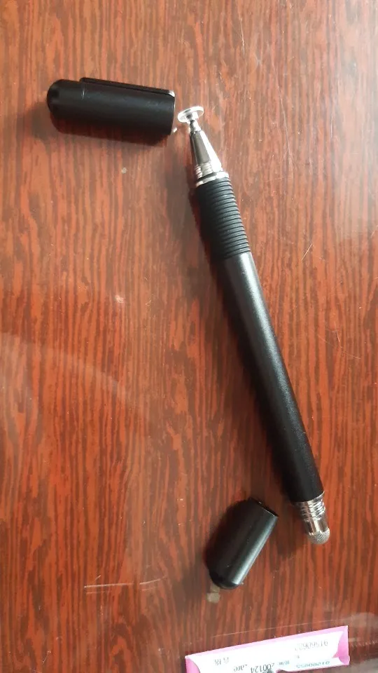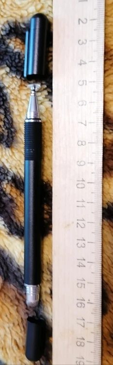 Приятный на ощупь, "матовый металл". Достаточно весомый. Один наконечник - очень-очень мелкая металлическая сеточка, экран не царапает. Предполагаю, что он должен служить дольше, чем резиновый. Другой - диск, выглядит очень хрупким, но у меня такого никогда не было, поэтому, может быть, он и достаточно выносливый. Наконечники можно заменять. Оба наконечника под навинчивающимися колпачками, один из которых с хвостиком, который можно, например, зацепить за карман рубашки). Колпачки можно навинчивать с любой стороны. Рядом с дисковым наконечником - резинка, чтобы его удобнее было держать. Не очень длинный стилус для того, чтобы постоянно носить с собой. Колпачки прекрасно предохранят оба наконечника от случайных повреждений в кармане.