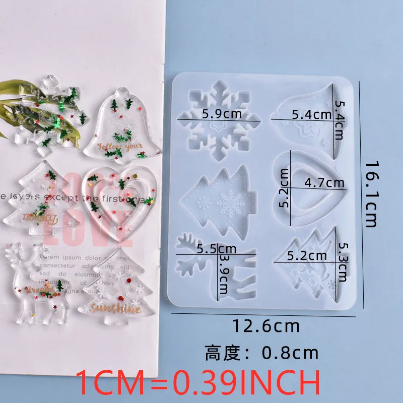 Брелок для новогодней елки 6 в 1, формы для эпоксидной смолы, снежинка, лось, "любовь", формочка для силиконовой Подвески Смола, рождественские украшения для дома