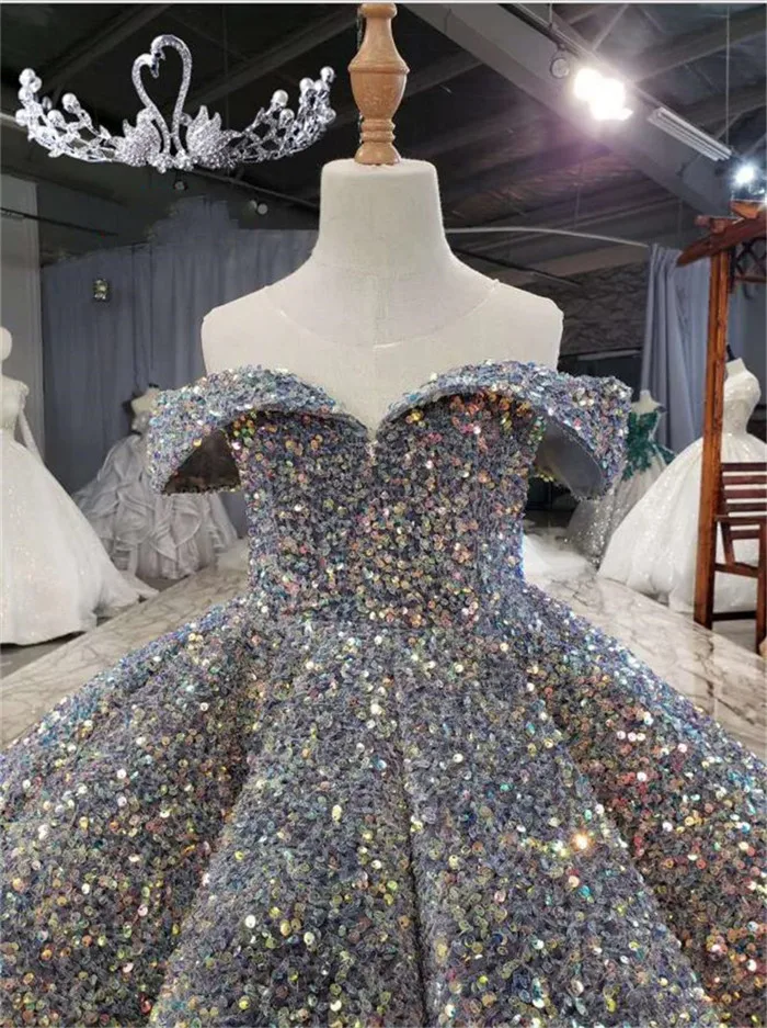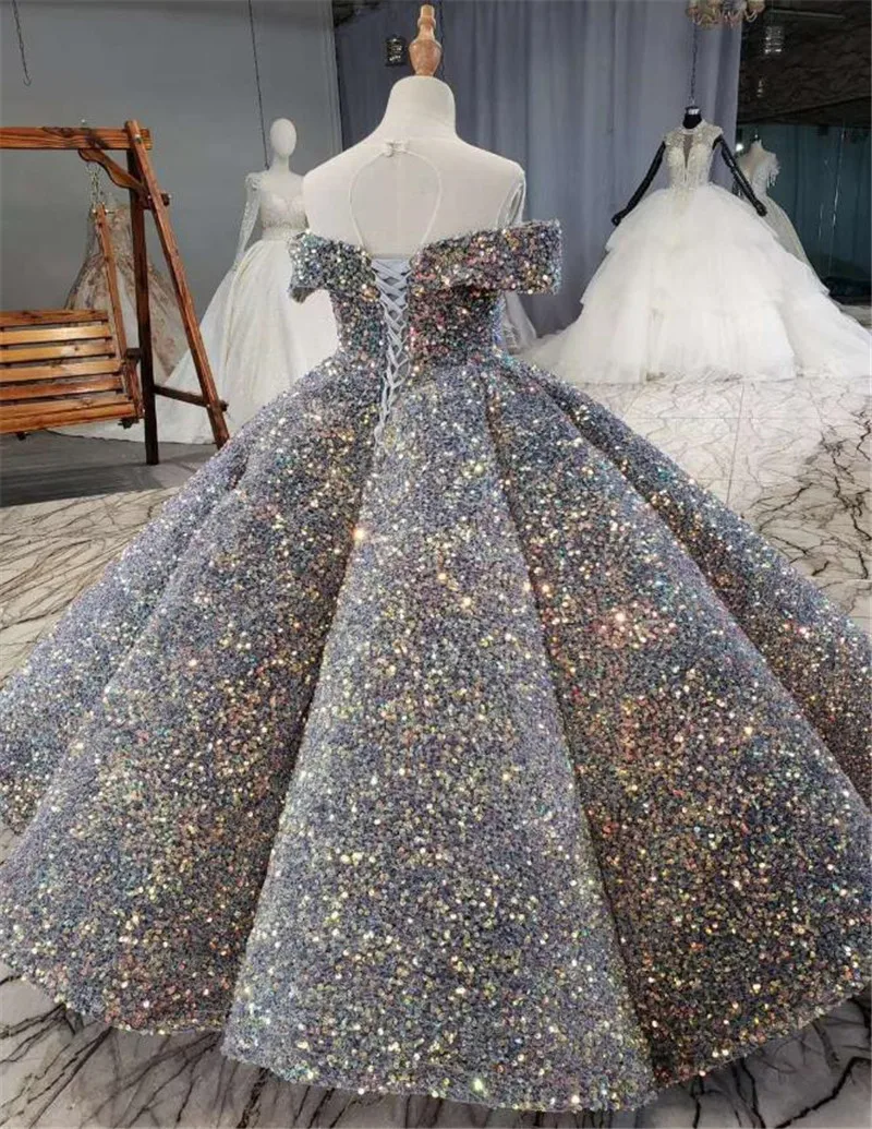 Роскошное бальное платье со шнуровкой сзади; Платья для свадебной вечеринки; Блестящее платье с блестками и открытыми плечами для девочек; Нарядное платье
