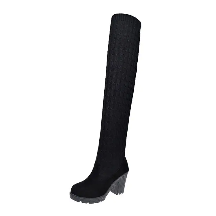 Женские сапоги, осенне-зимние высокие сапоги до бедра для женщин, Вязаная Шерстяная длинная обувь, женские коричневыечерные сапоги, женская обувь