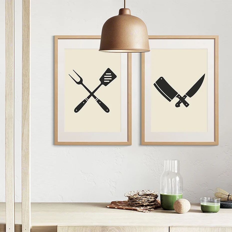 Постеры для резки мяса из говядины, ягненка, свинины, курицы, мясника, постеры для рисования на холсте, нож и вилка, настенные картины с художественным принтом, декор для столовой и кухни