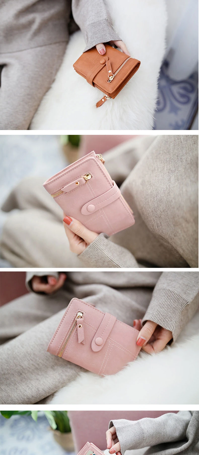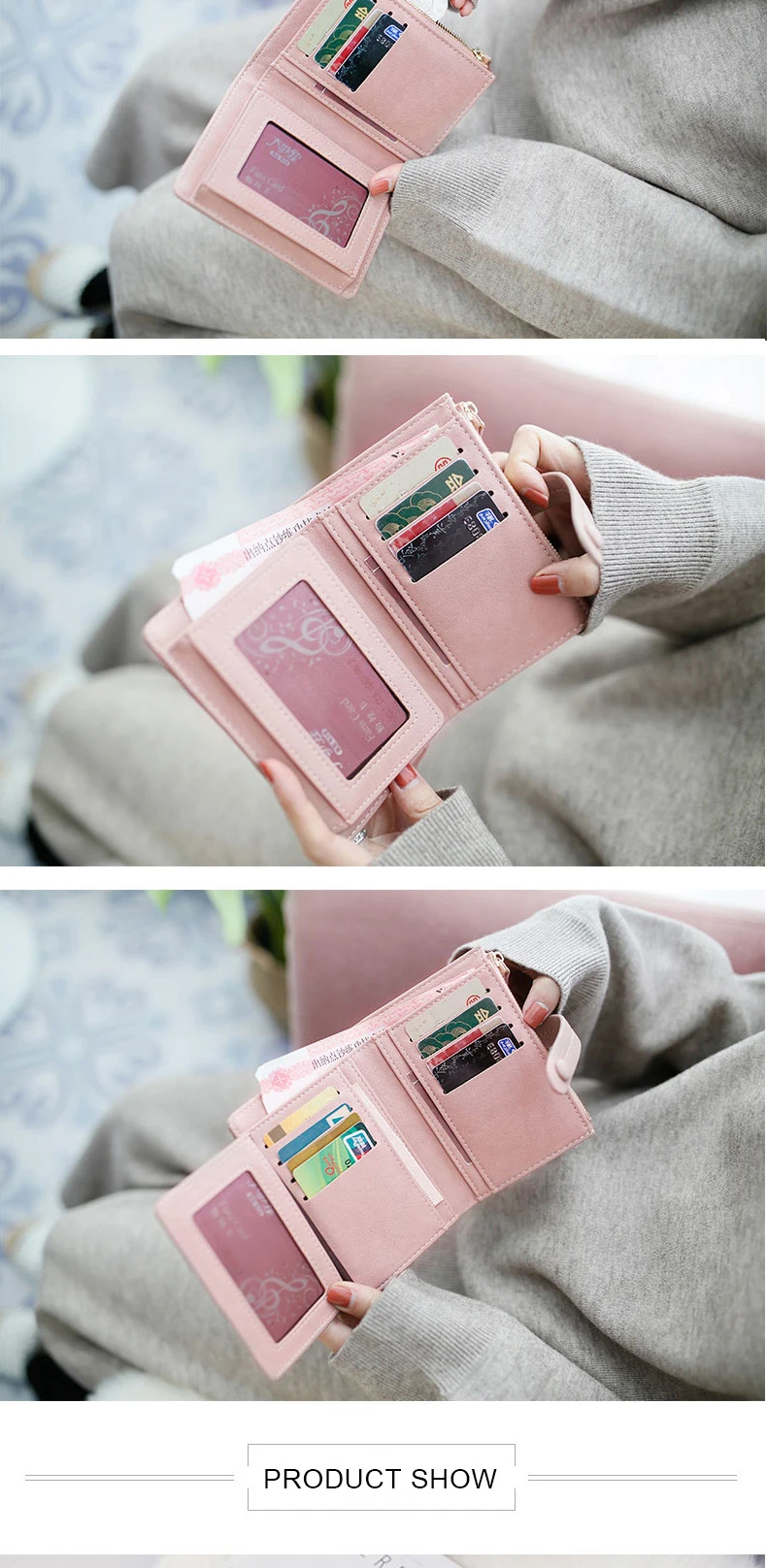 Кошелек женский, многофункциональный, компактный, складывается в три сложения, бумажник для студента